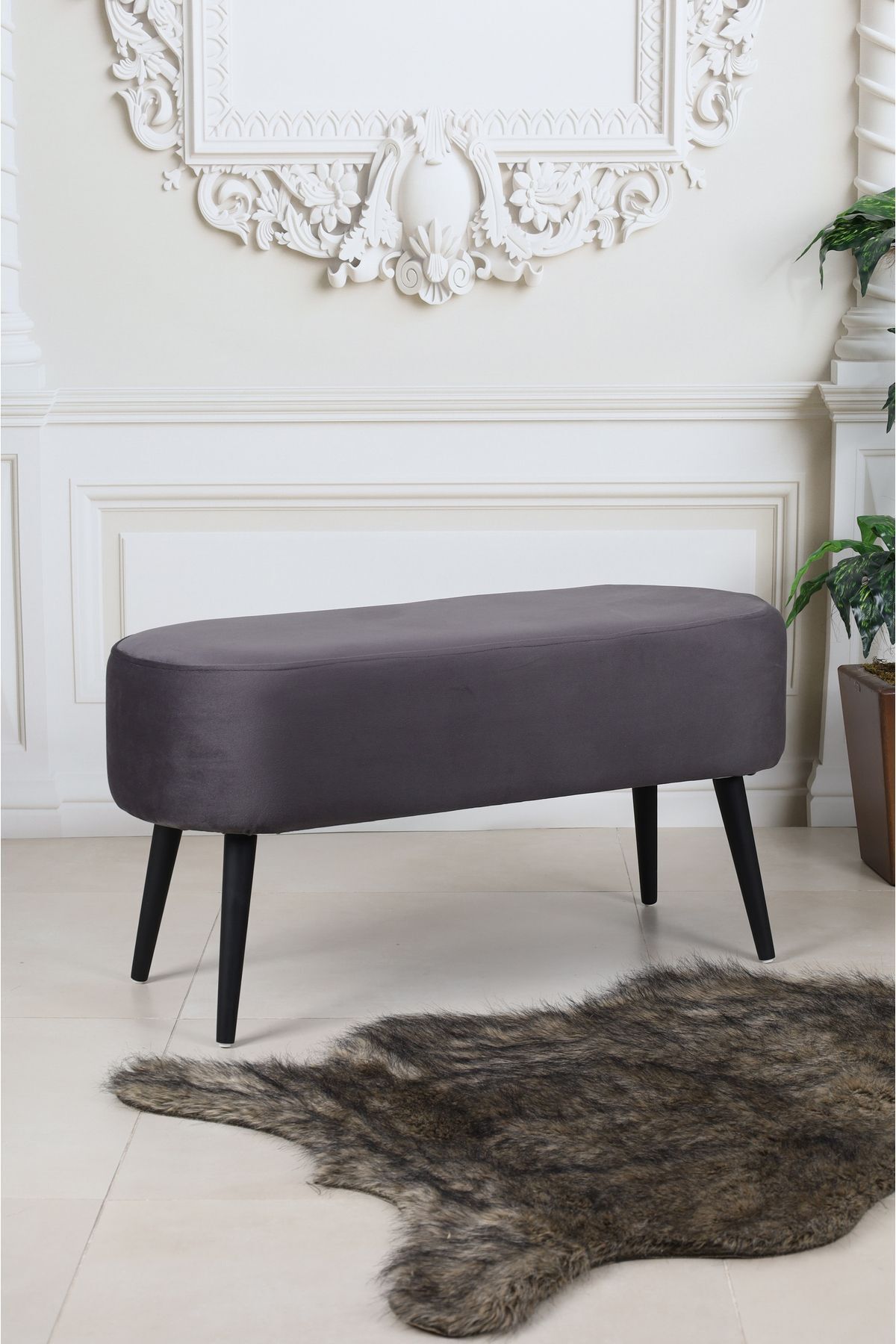 LUNA ANTRASİT 90 CM LARGE SİYAH GÜRGEN AYAKLI ÇOK AMAÇLI PUF BENCH KOLTUK