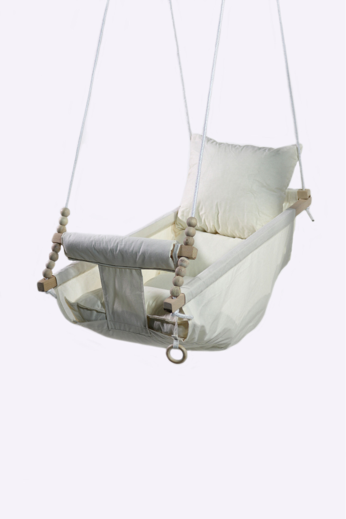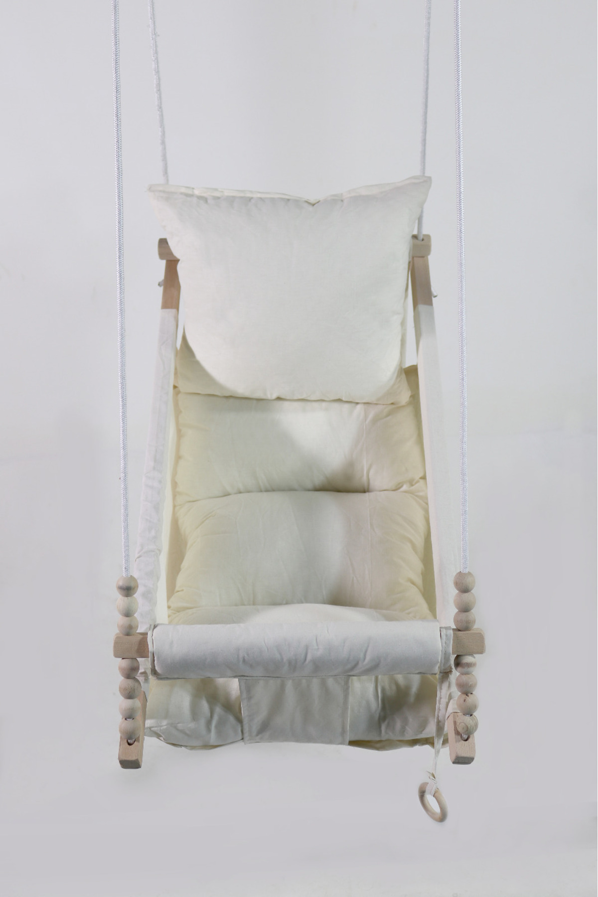 Misa Shop Swing Krem Çocuk Salıncak Yatak İpli Tavan Salıncak Hamak AHŞAP UZUNLUKLARI 85X42 ORGANİK İÇ KUMAŞ YATAK OLABİLEN TASARIM .