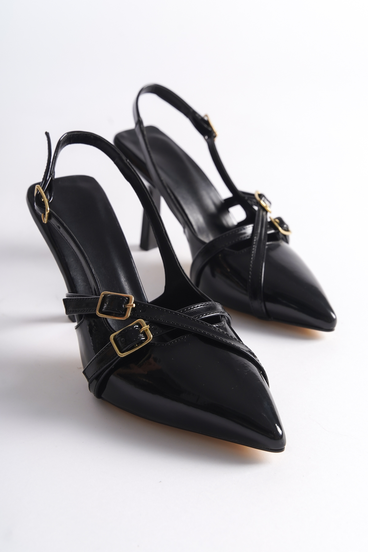 Rugan materyali, parlak ve göz alıcı bir görünüm kazandırırken, orta topuk boyu ile rahatlık sunar