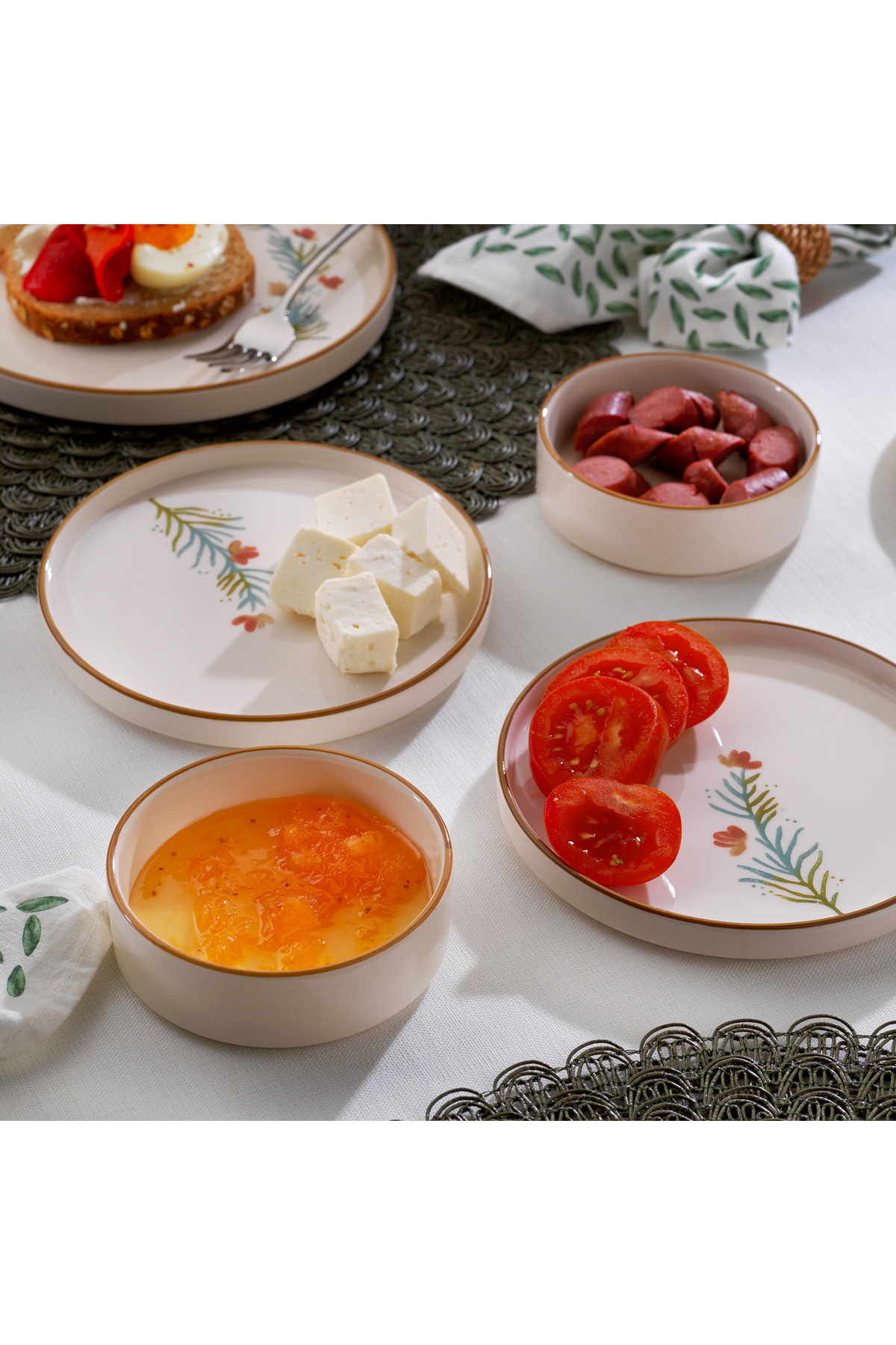 4 adet 19 cm pasta tabağı, 4 adet 10 cm reçellik, 2 adet 11*24cm sunum tabağı.