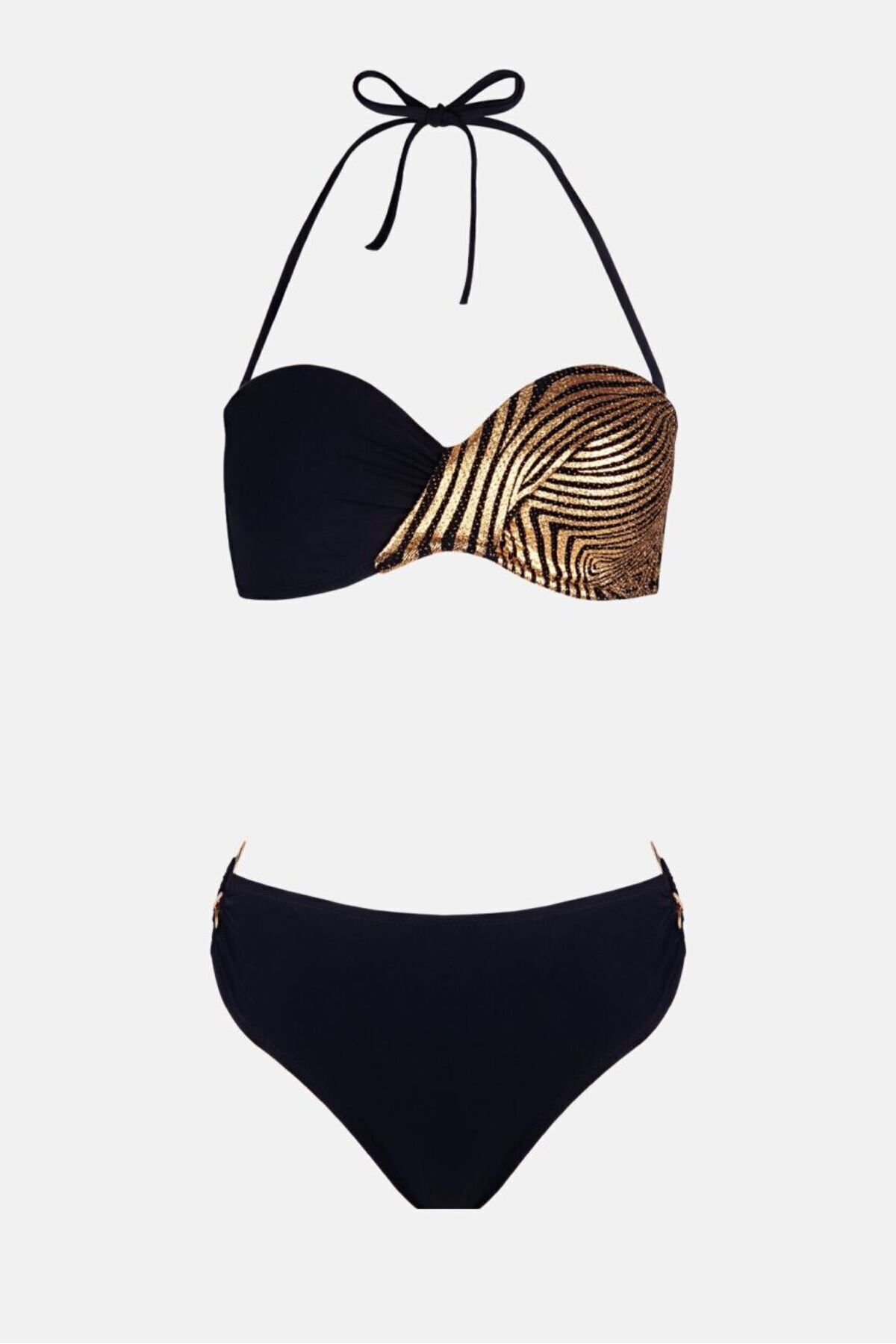 - İnce sünger kaplı- Balenli (Telli)- Straplez bikini üstü- Yanları aksesuarlı- Komple astarlı yüksek bel bikini altı- %80 Polyamid %20 Elastan- Numune ürün 38 beden- Bikini askıları paket içindedir.- Manken ölçüleri: Göğüs 85, Bel 60, Basen 90- Hijyen bandı çıkarılan ürünlerin iadesi ve değişimi yapılmamaktadır.- Türkiye'de üretilmiştir.