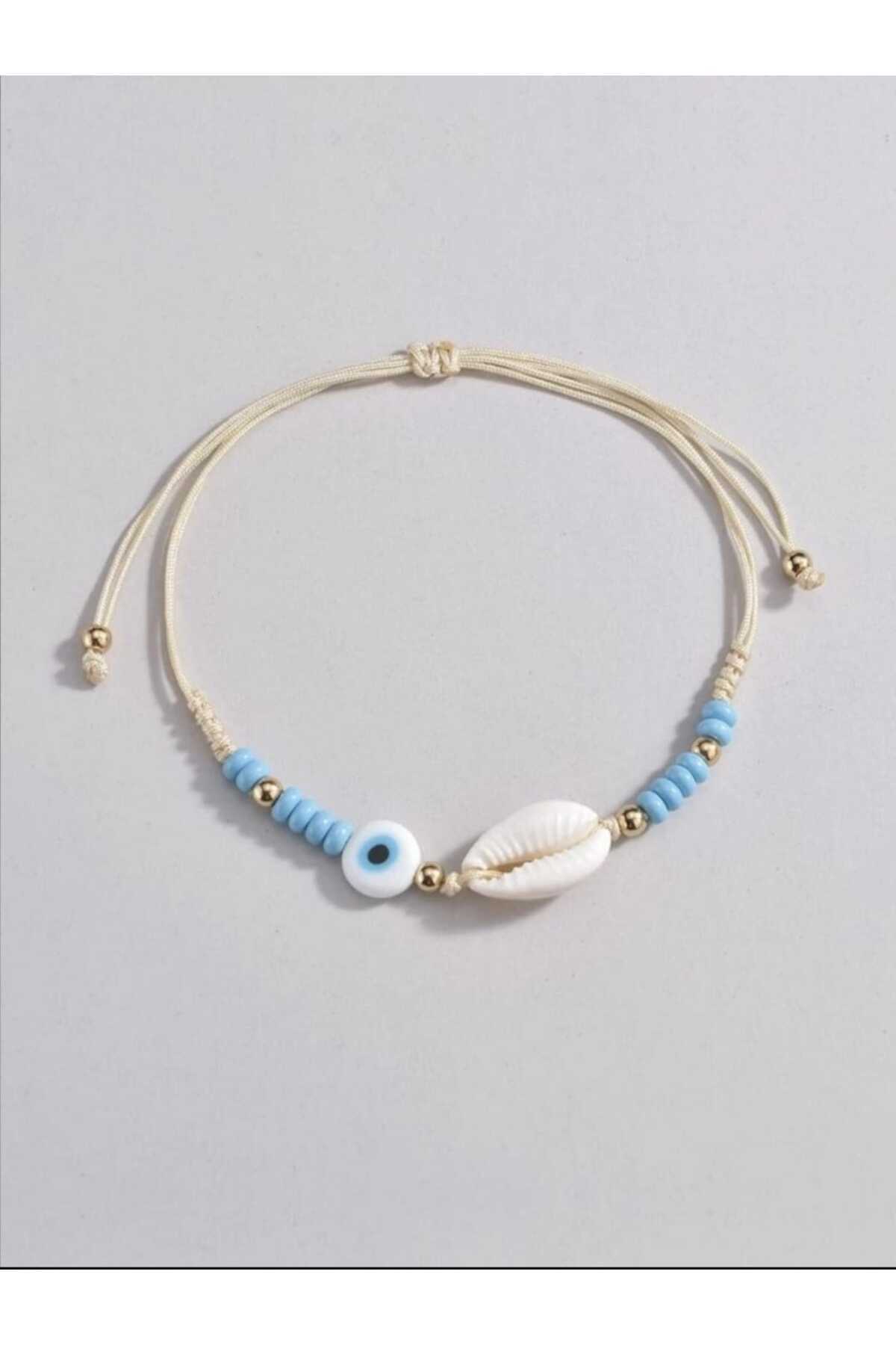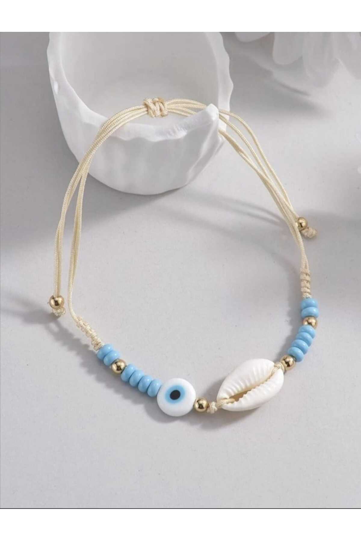 Bu benzersiz nazar boncuklu deniz kabuğu halhal, denizin koruyucu gücünü ve şıklığını bir araya getiriyor.
