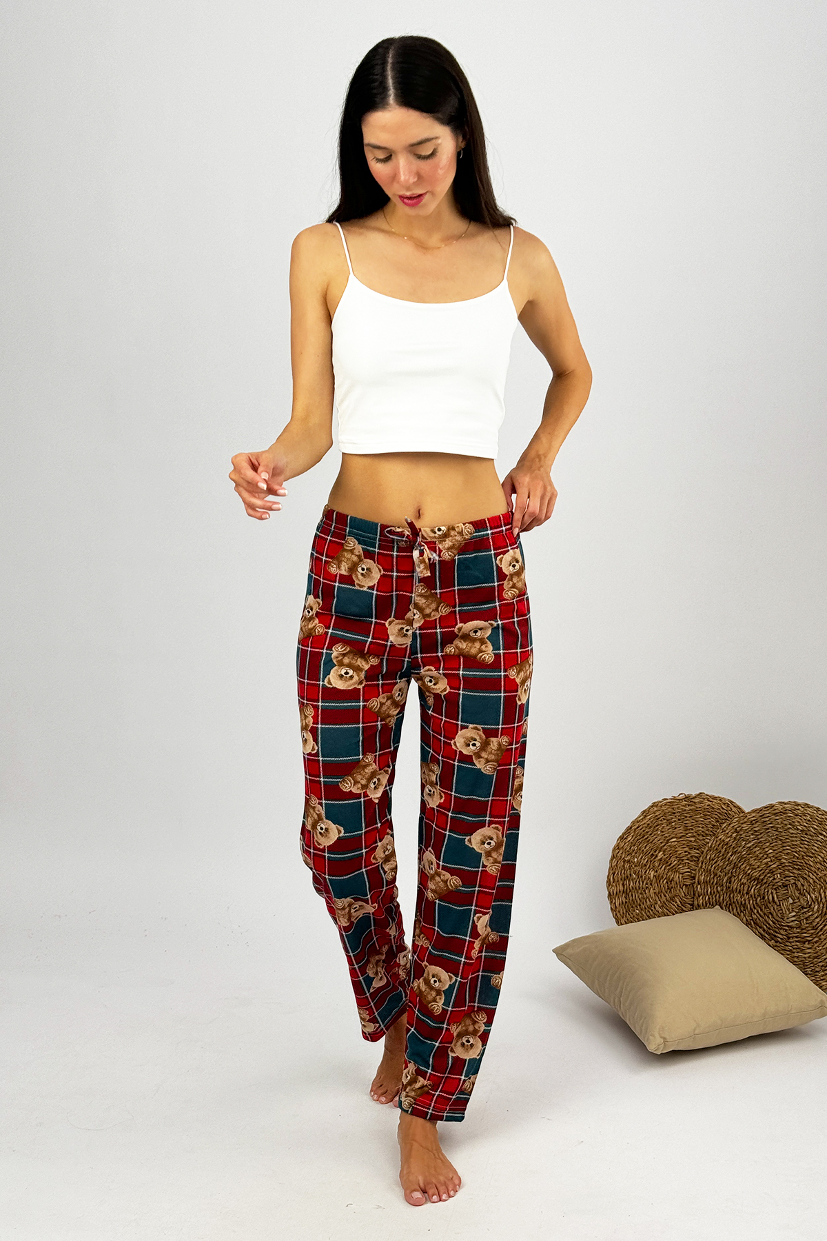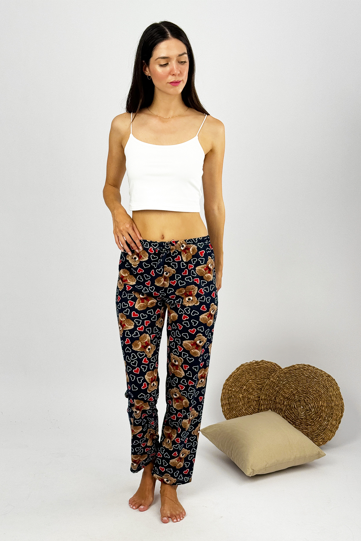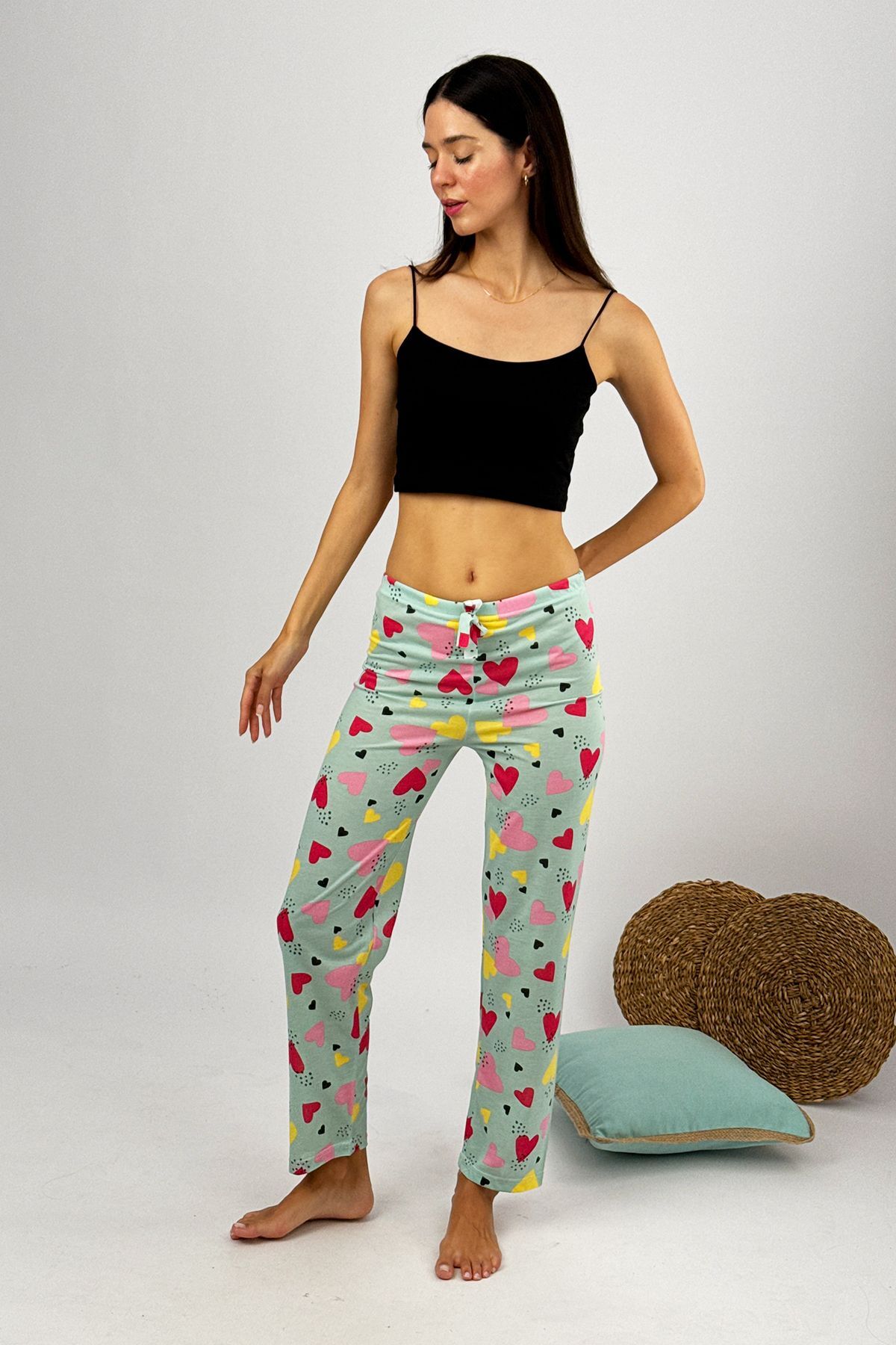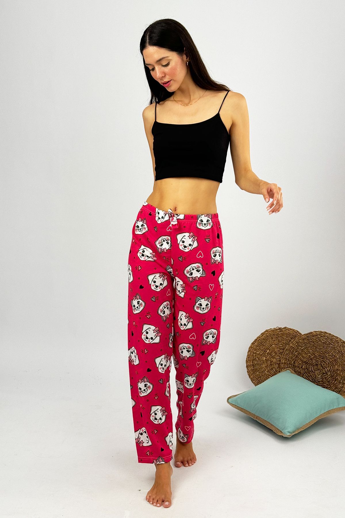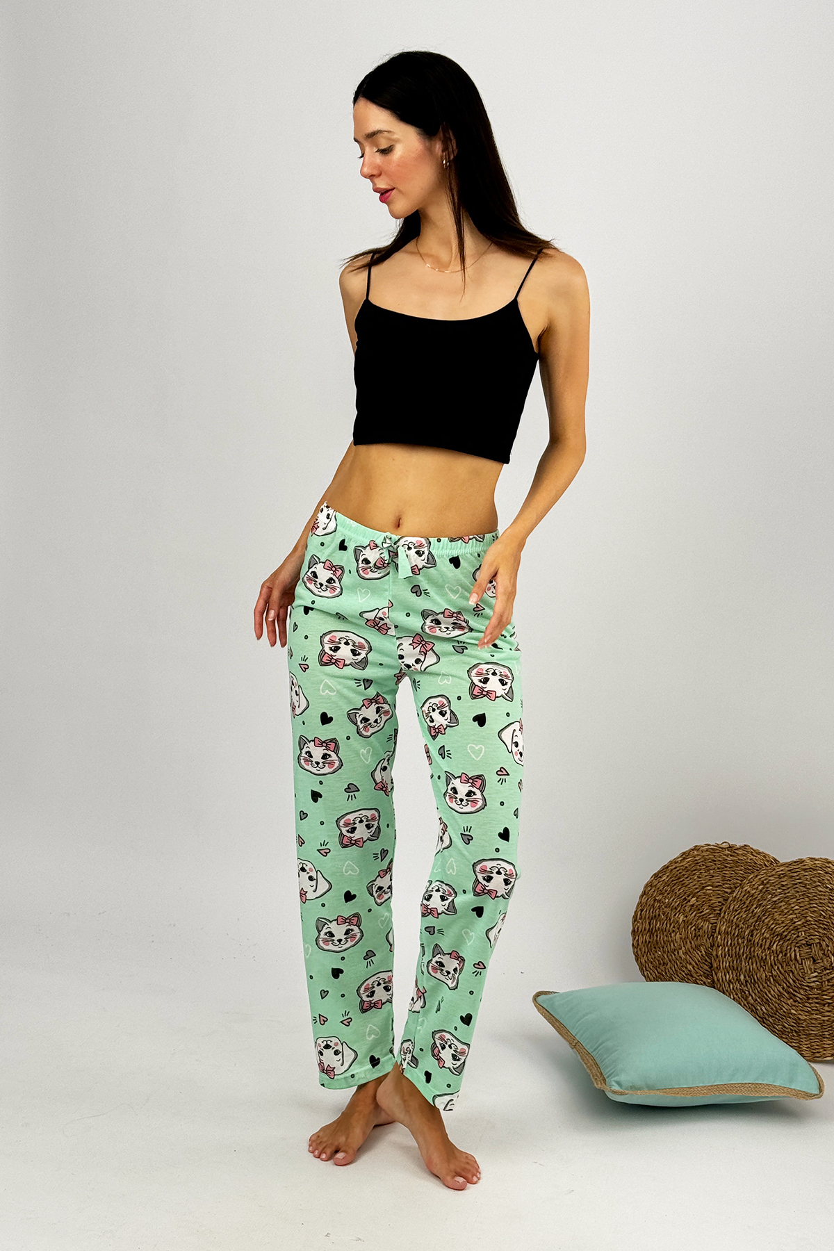 Kadın %100 Pamuk İnce Nefes Alan Kumaş Lastikli Bel Desenli Baskılı Pijama Altı
