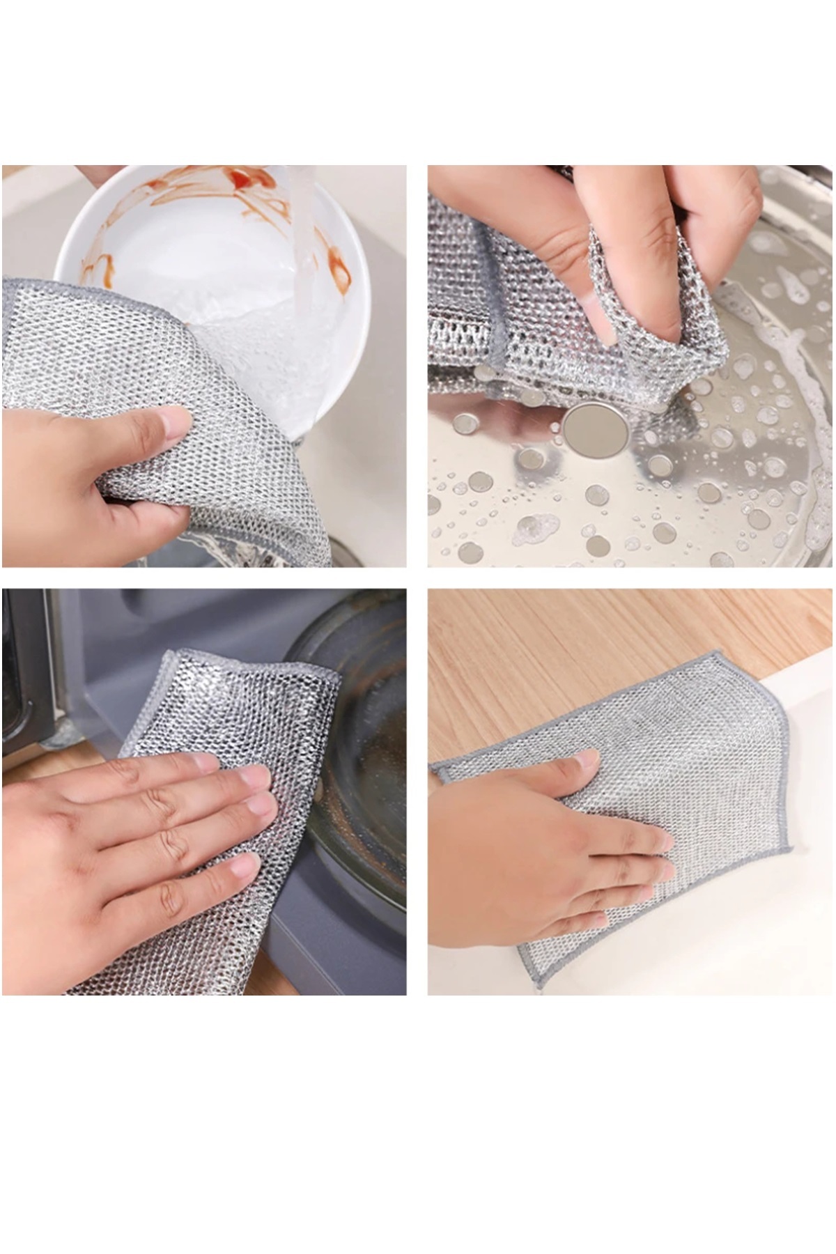 Pratik Çok Amaçlı Paslanmaz Telli Bulaşık Bezi Kir Pas Sökücü Sihirli Temizlik Bezi Çift Kat 5 ADET Boyutu: 20x19.5cm