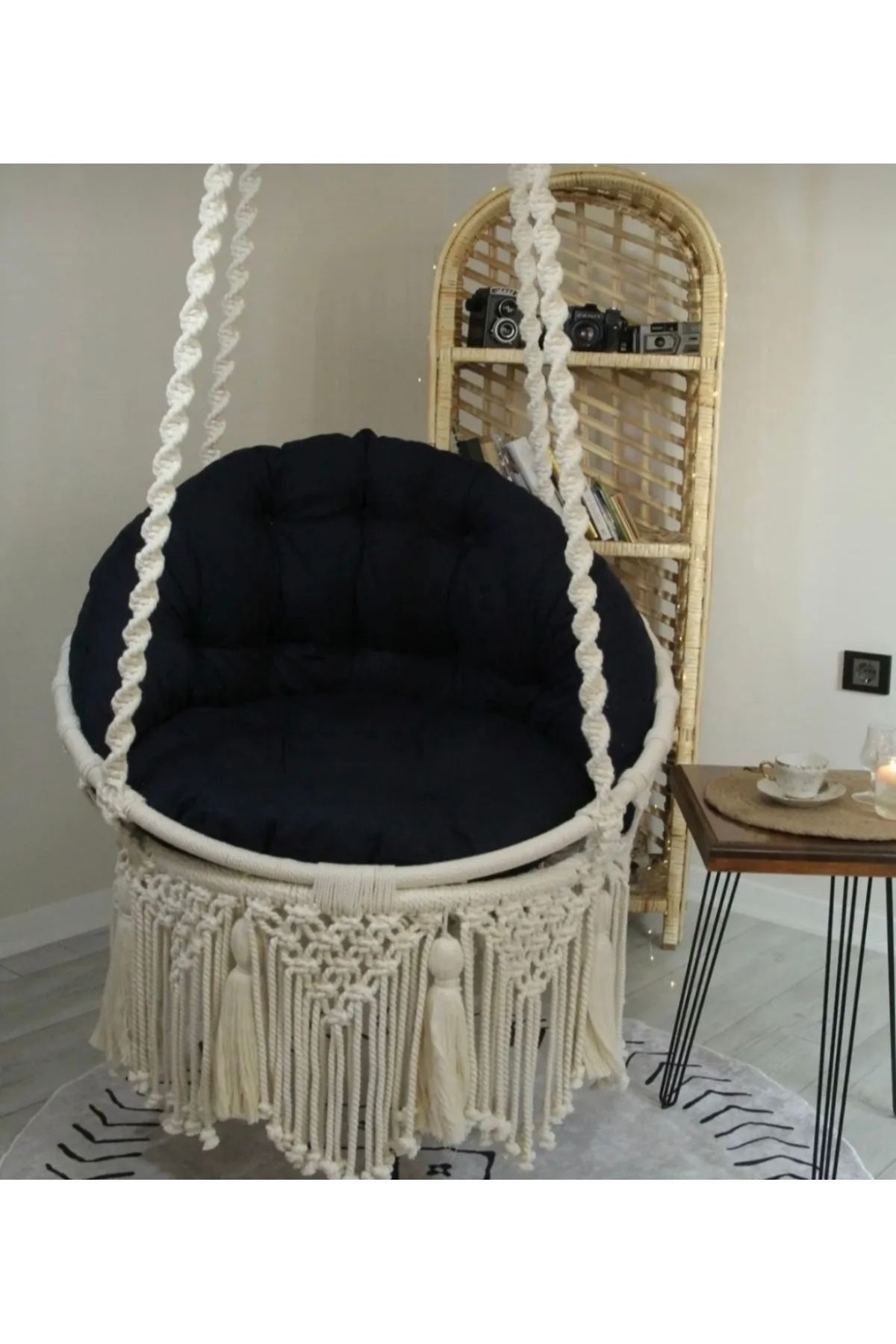 Makrome salıncak minderi oturma yeri 60cm, sırt kısmı 75cm çapındadır. Antibakteriyel kumaş silinebilir lekeyutmayan kumas