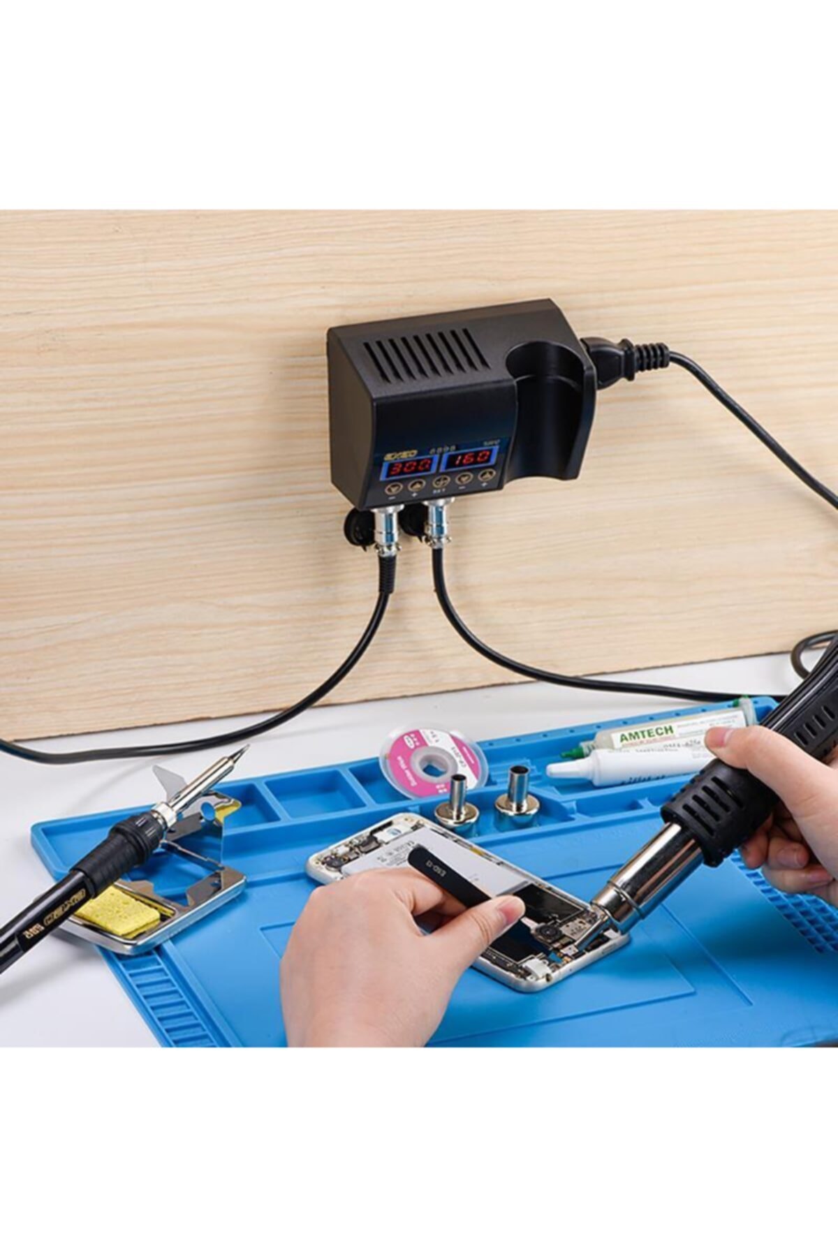 Exeo Havya Sıcak Hava Üflemeli Havya İstasyonu Lehim Makinesi 750W Lehimleme İstasyonu LCD Dijital Ekran BGA SMD PCB için İdeal Sıcak hava ısıtıcısı ve lehim kaynak istasyonu 2 si 1 arada.