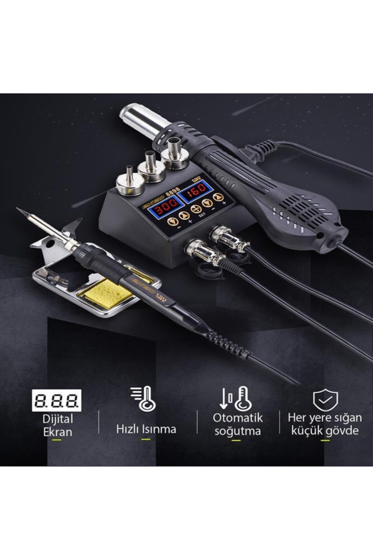 Çalışma Gerilimi: AC220-240V Frekans: 50Hz / 60Hz Sıcak Hava Çıkış Gücü: 750W Hava Sıcaklık Aralığı: 100 ° C ~ 480 ° C Sıcaklık Kararlılığı: ± 2 ? Hava Akışı: 150L / dak (maksimum) Havya Çıkış Gücü: 80W Frekans: 50Hz / 60Hz Havya Sıcaklık Aralığı: 180 ° C-500 ° C Sıcaklık Kararlılığı: ± 1 ° C Resistans: Seramik Nasıl kullanılır: 1.