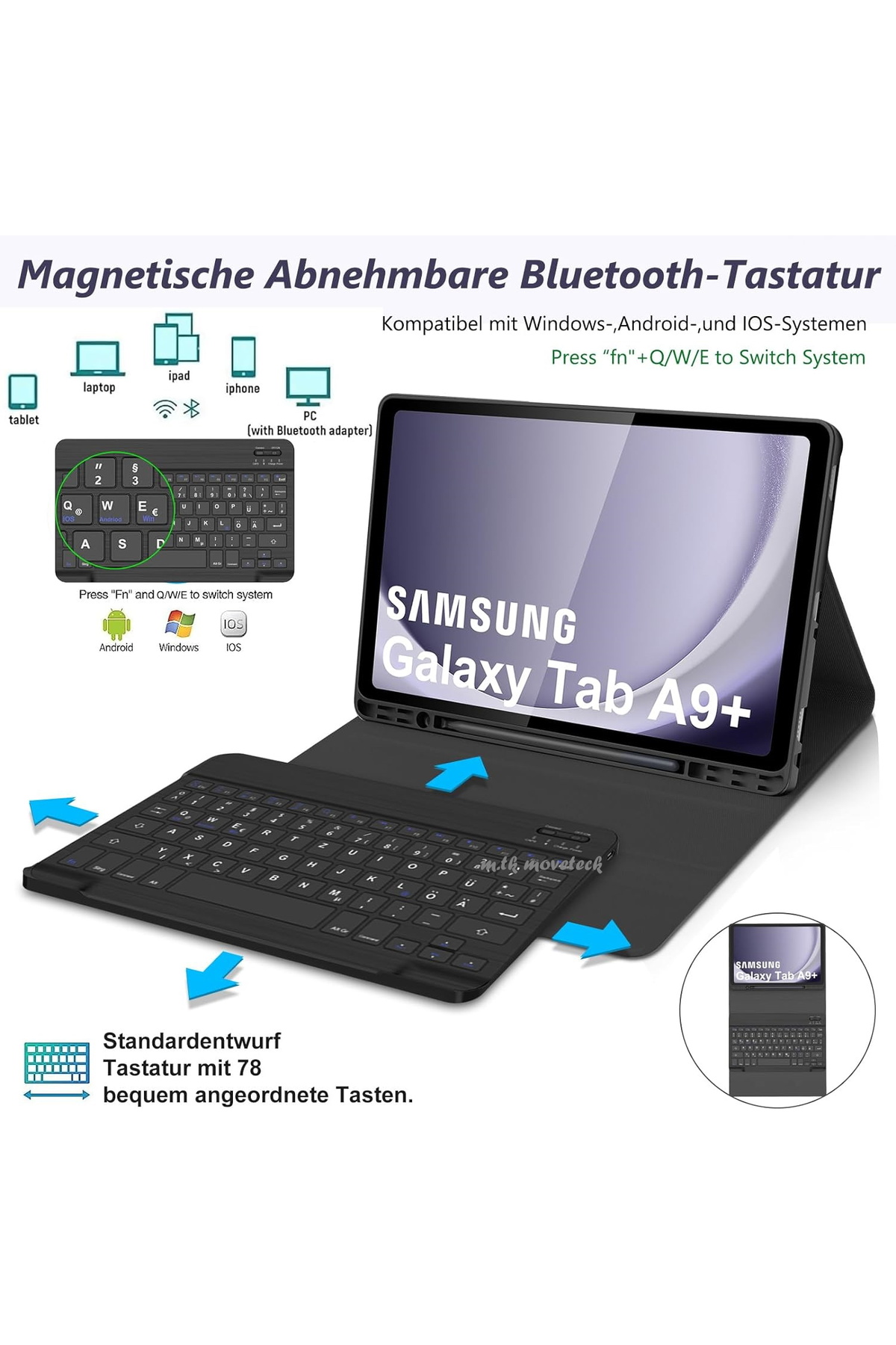 Galaxy Tab A9 Plus / A9+ 11 inç (SM-X210 | SM-X215 | SM-X216) UYUMLU Bluetooth Klavyeli Kılıf Kalem dahil değildir KALVYELİ tablet kılıfıdır.