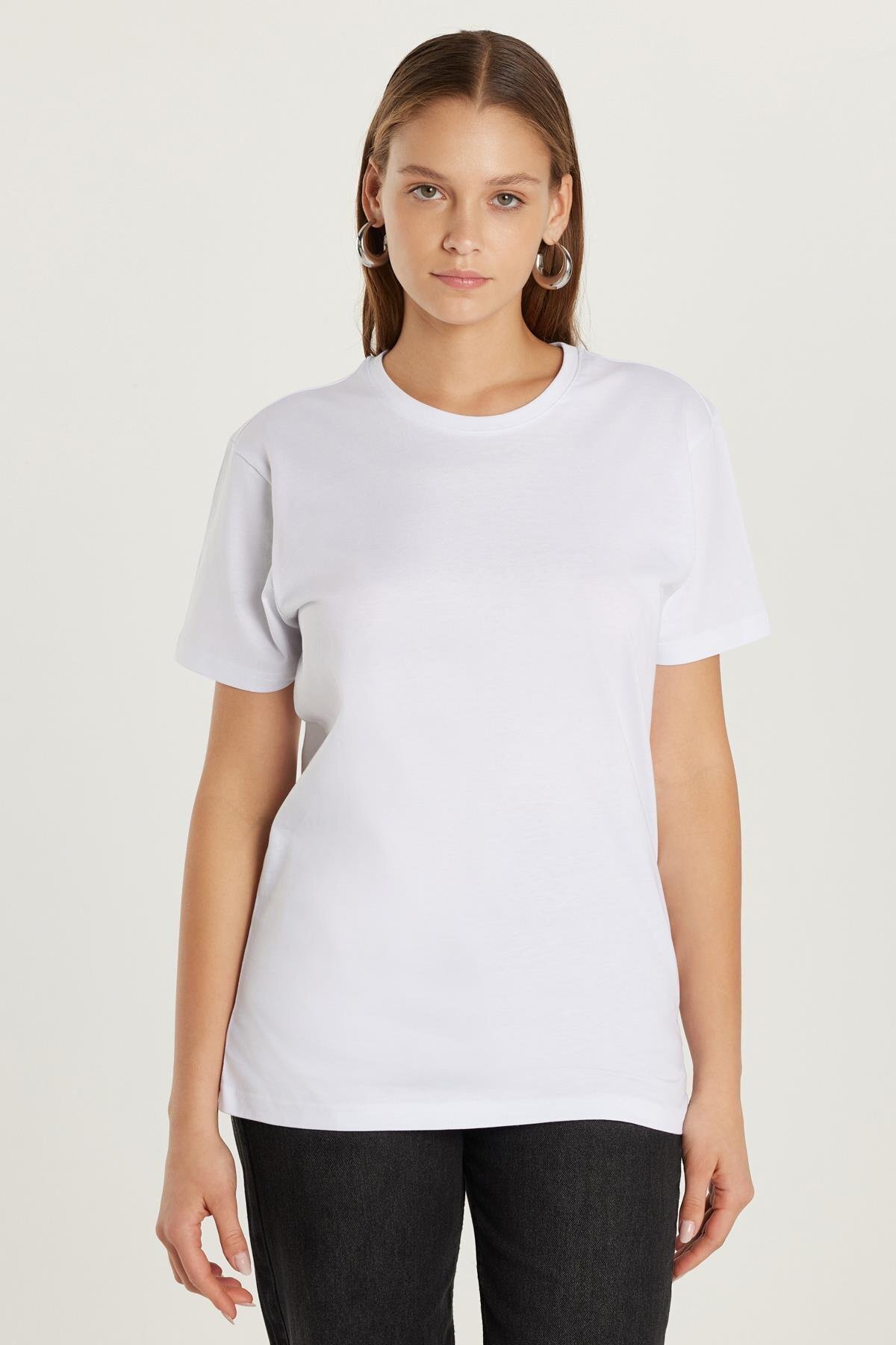 Unisex Slim Fit Dar Kesim %100 Pamuk Yumuşak Dokulu Beyaz Bisiklet Yaka Tişört