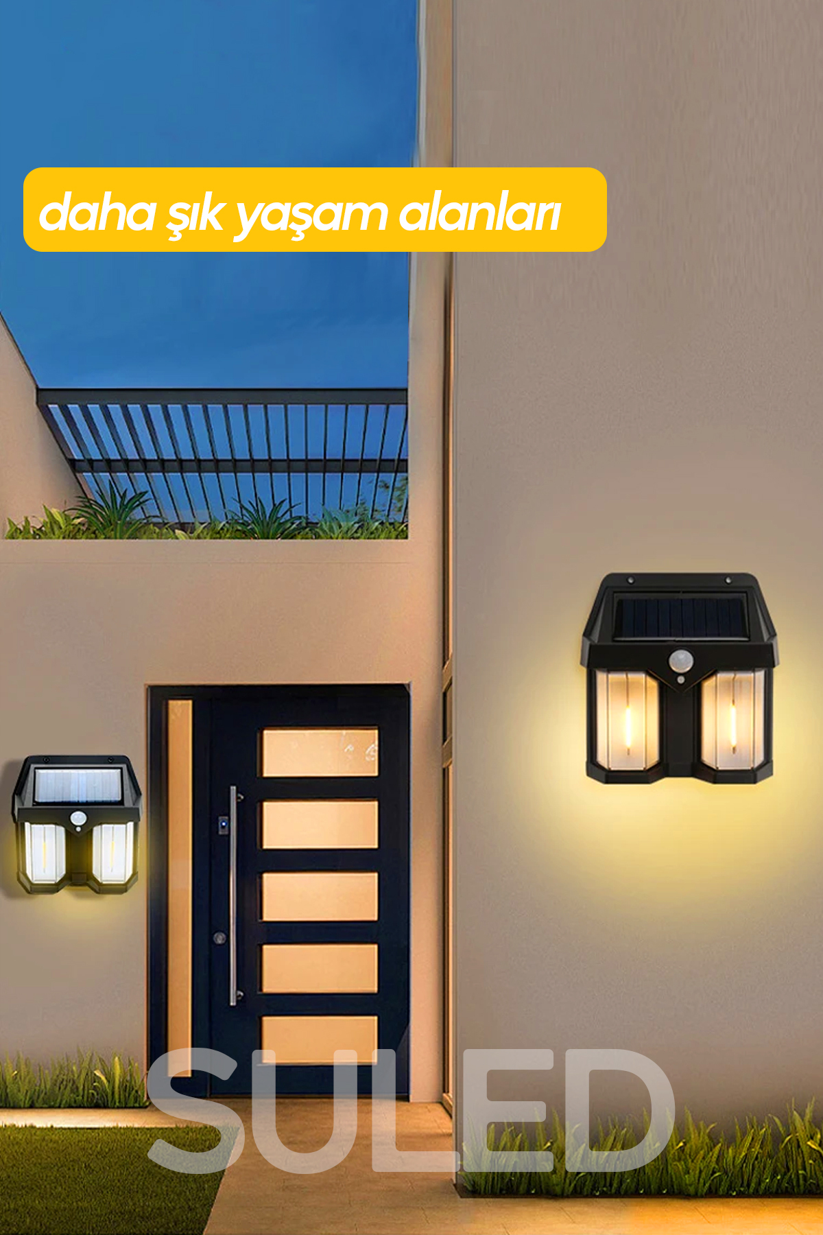 Sensörlü Solar Panelli 3 Modlu Otomatik Bahçe Aydınlatması Duvar Led Işık, Bahçe balkon teras duvar çit garaj önü yol tarafı gibi alanlarınız için dekoratif ve güvenlik aydınlatması sağlar, güneş paneli sayesinde elektrik ve kablo gibi tesisat süreçleri gerektirmez, tüm enerjisini güneşten alır, gündüz 6-8 saat şarj süresi tüm gece yetecek kadar enerji depolar. 3 farklı aydınlatma modu ile ihtiyacınıza göre otomatik devreye alabilirsiniz 1. Mod : Işık gece olunca sürekli yanar herhangi bir hareket kontrolü sağlanmaz 2. Mod : Işık Soft düşük güçte yanar sensör önünden bir şey geçtiği zaman tam güçte aydınlatır 15-20 sn sonra tekrar düşük aydınlatma moduna geçer 3. Mod : Işık tamamen sönüktür, sensör önünde hareket algılandığında tam güçte yanar, 15-20sn sonra otomatik söner Ürün Özellikleri