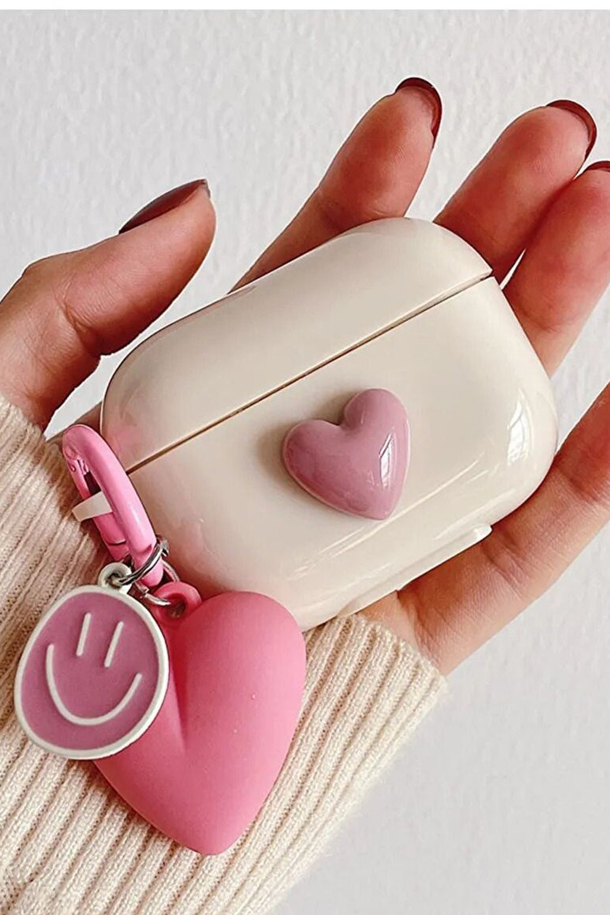 Krem rengi ve kalp desenli silikon malzeme, şık bir görünüm sunarken AirPods'unuzu korur