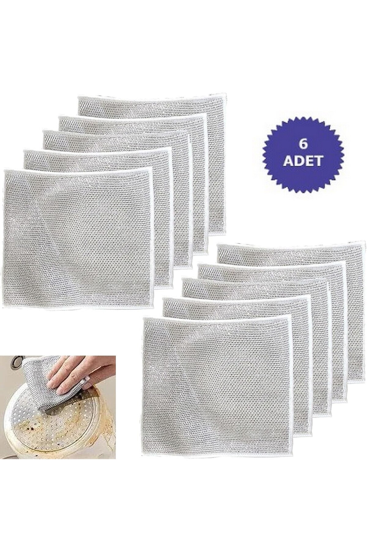 Özellikler: Malzeme: Metal Tel Boyut grafik: 20cmx20cm/7.87inçx7.87inç Paket içeriği: 6 Adet Tel Bulaşık Bezi