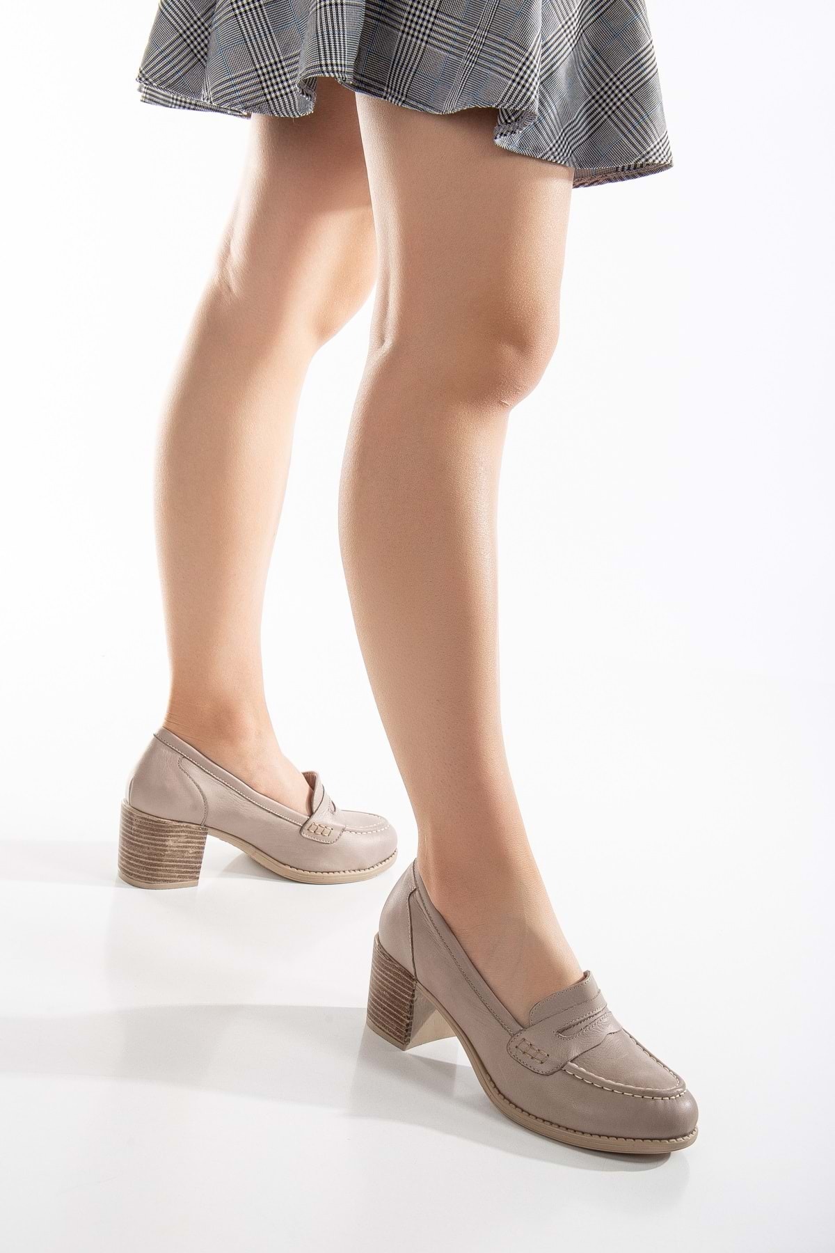 • Kadın Günlük Deri Saraçlı Kalın Topuklu Ayakkabı