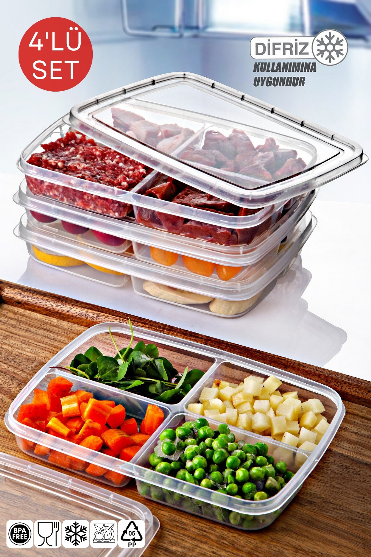 4 Bölmesi ile farklı gıda maddelerini ayırarak saklamanıza olanak tanır.