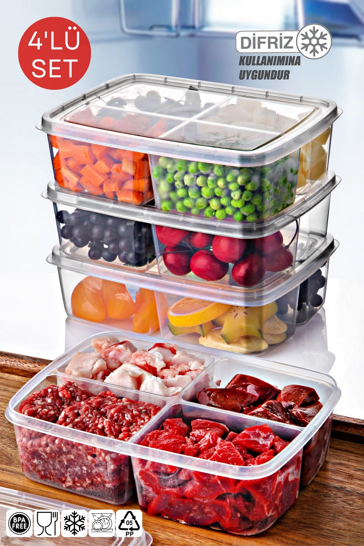 4 Bölmesi ile farklı gıda maddelerini ayırarak saklamanıza olanak tanır.