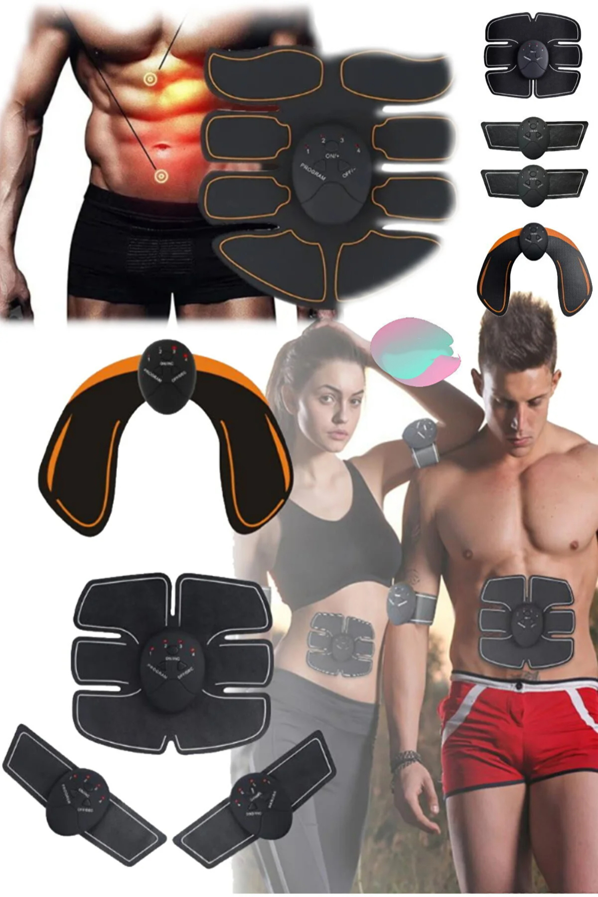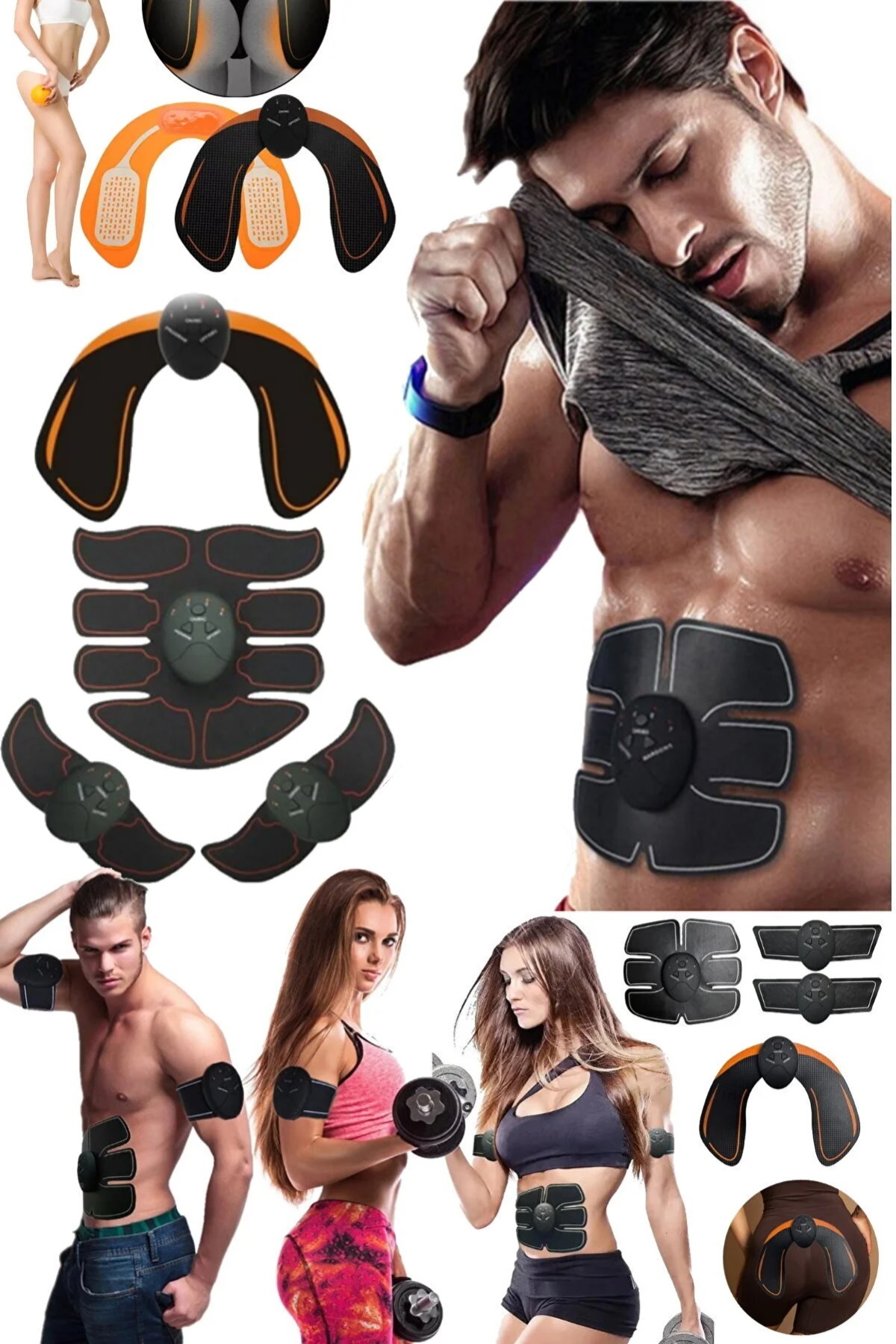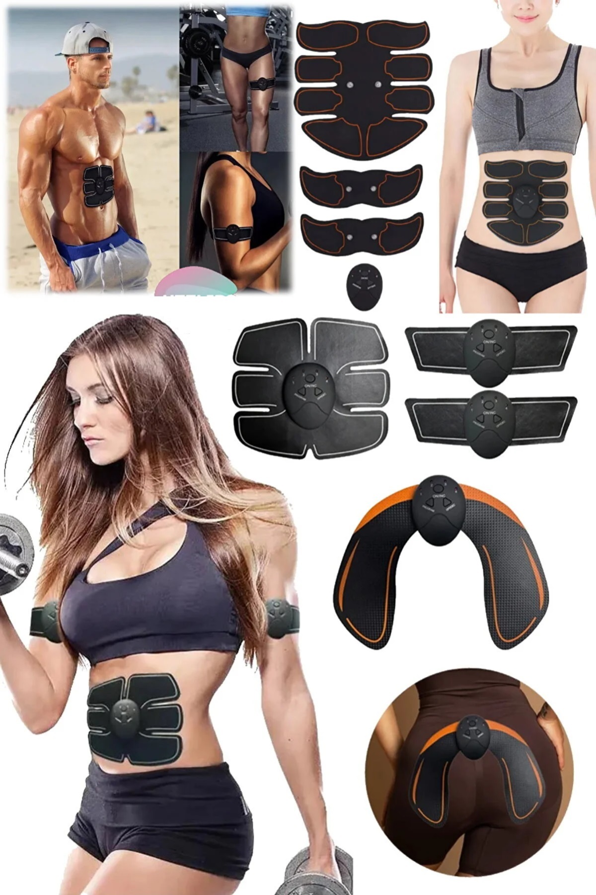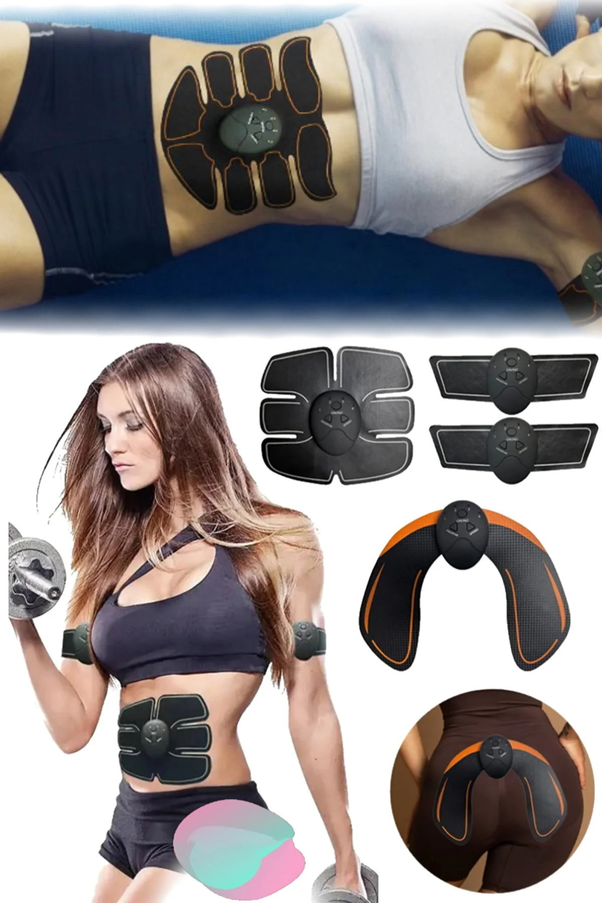 4'lü Karın Kol Bacak Kas Eğitimi Titreşim Fitness Masaj Gücü Aleti Fitness Kas Miyostimülatör Set