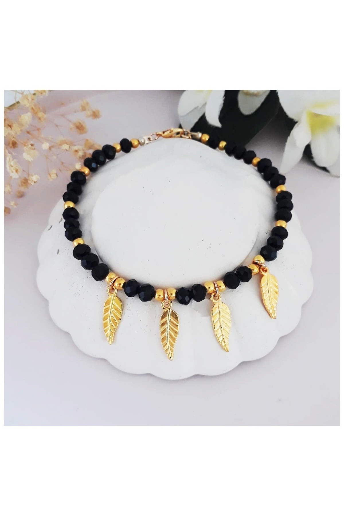 Gençlerin enerjisini ve stilini yansıtan siyah kristal taşlı yaprak halhal, günlük kombinlerinize şıklık katmak için ideal bir aksesuardır