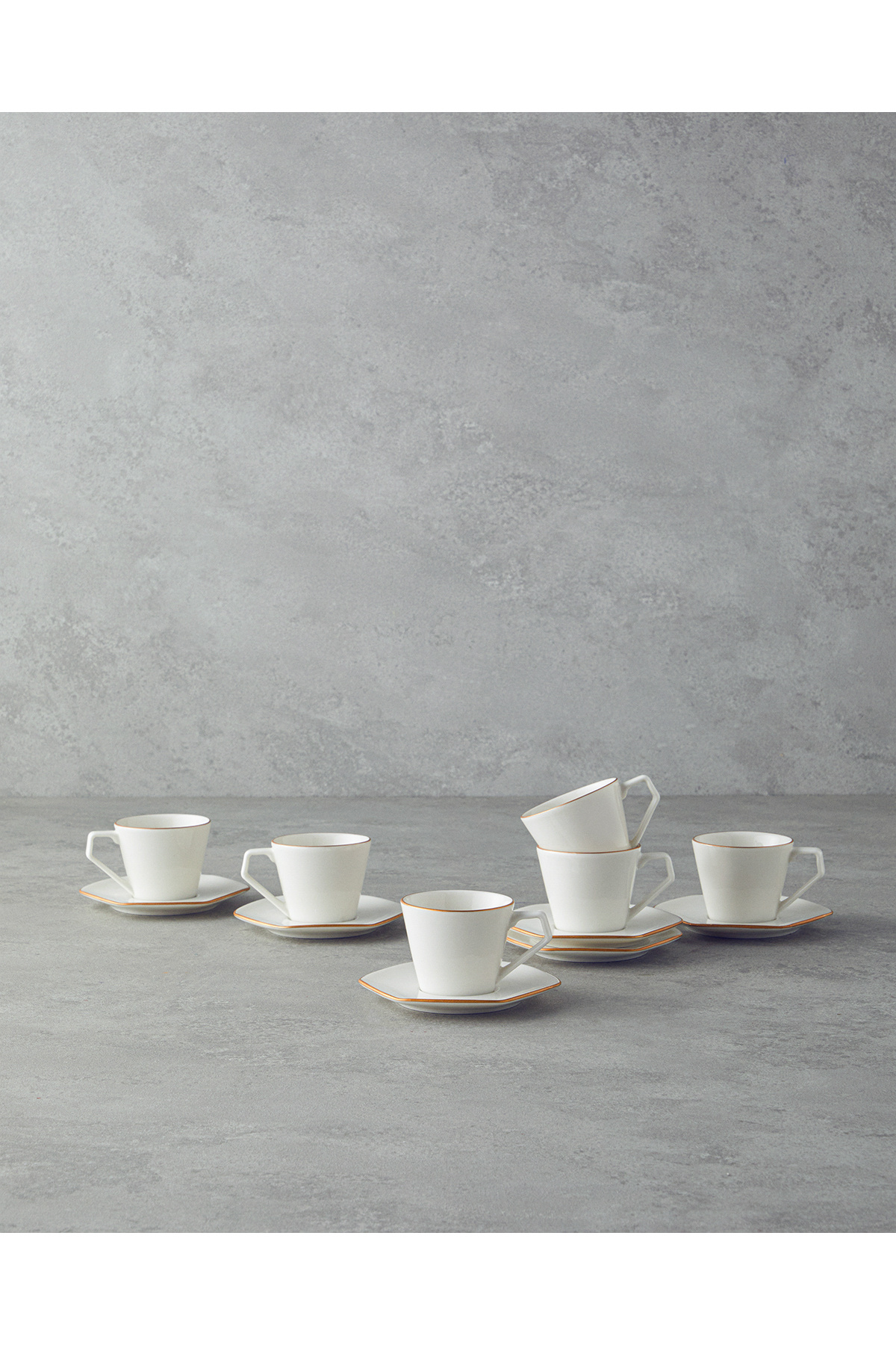 Marlin Bone Porselen Kahve Fincan Takımı 12 Parça 6 Kişilik Gold