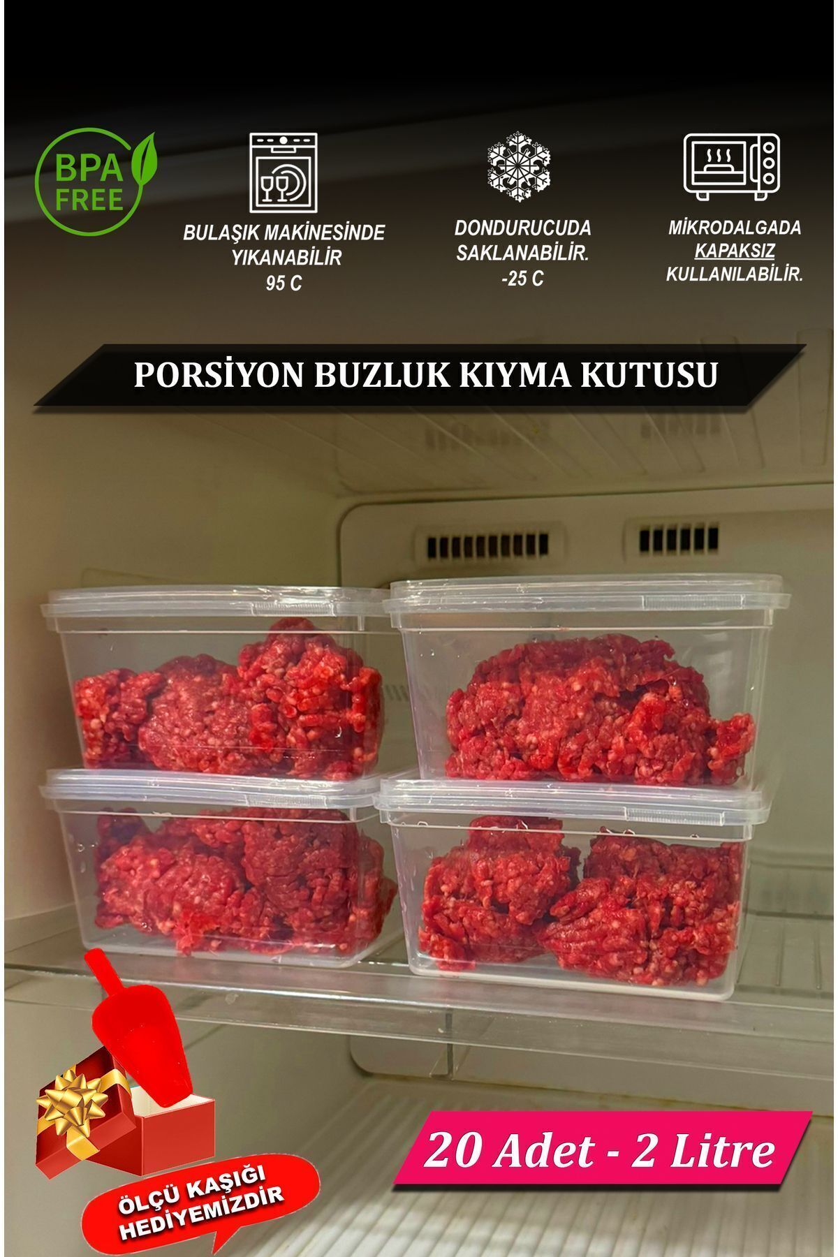 Derin dondurucu ve buzdolabı için ideal boyutlarda olan 2 litre kapasiteye sahiptir