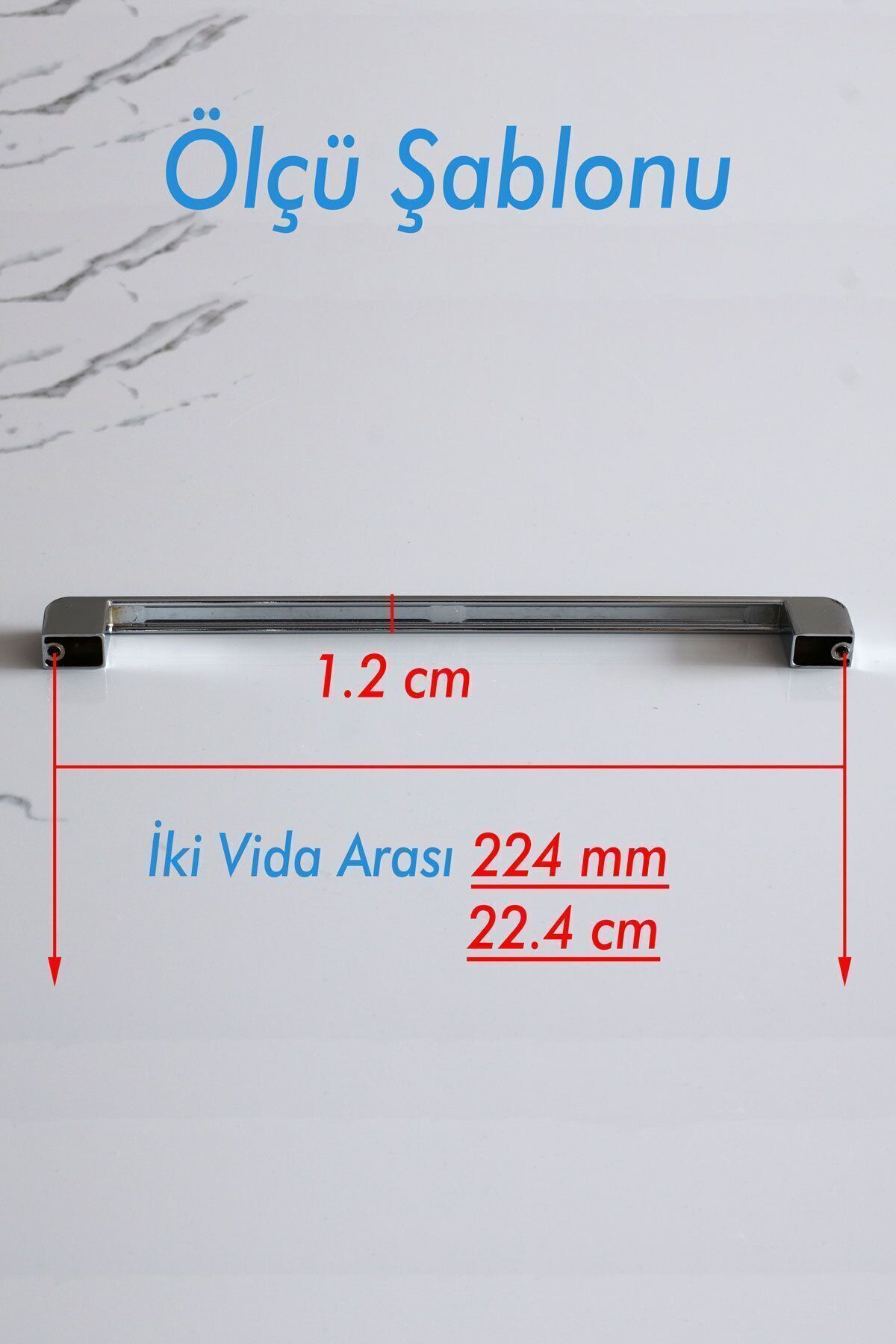 Dolap veya çekmecenizin vida giriş yerleri arasındaki mesafeyi metre ile ölçünüz. Kulp ölçüleri standarttır. (Ürüne ait detaylı ebat bilgisine ürün görsellerinden ulaşabilirsiniz)