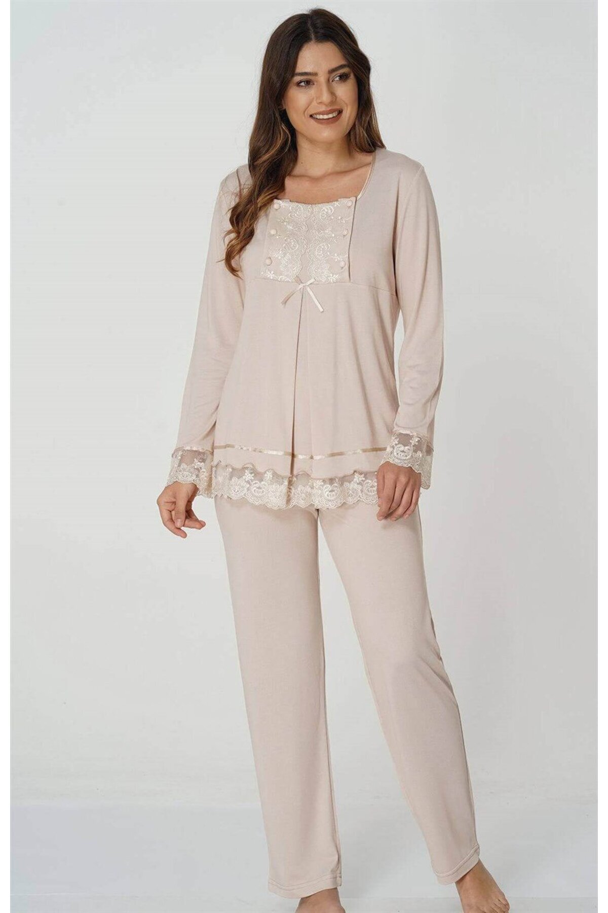 LOHOUSE Kadın Fuşya Tasarım Dantelli Pamuklu Lohusa Hamile Pijama Takımı LOHOUSE Kadın Fuşya Tasarım Dantelli Pamuklu Lohusa Hamile Pijama Takımı NURTT3045
