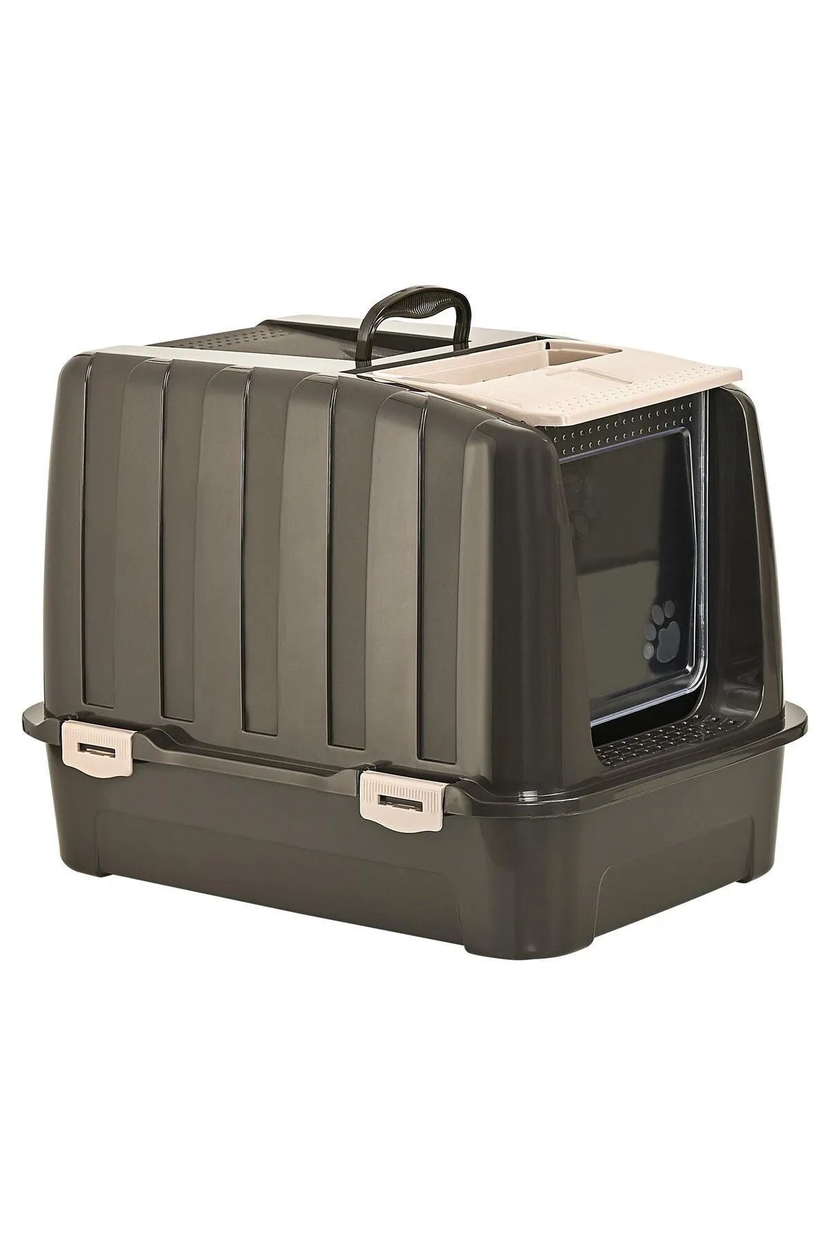 - Kedi tuvaletinin kahverengi rengi, evinizin dekorasyonuyla uyum sağlayarak şık bir görünüm sunar.