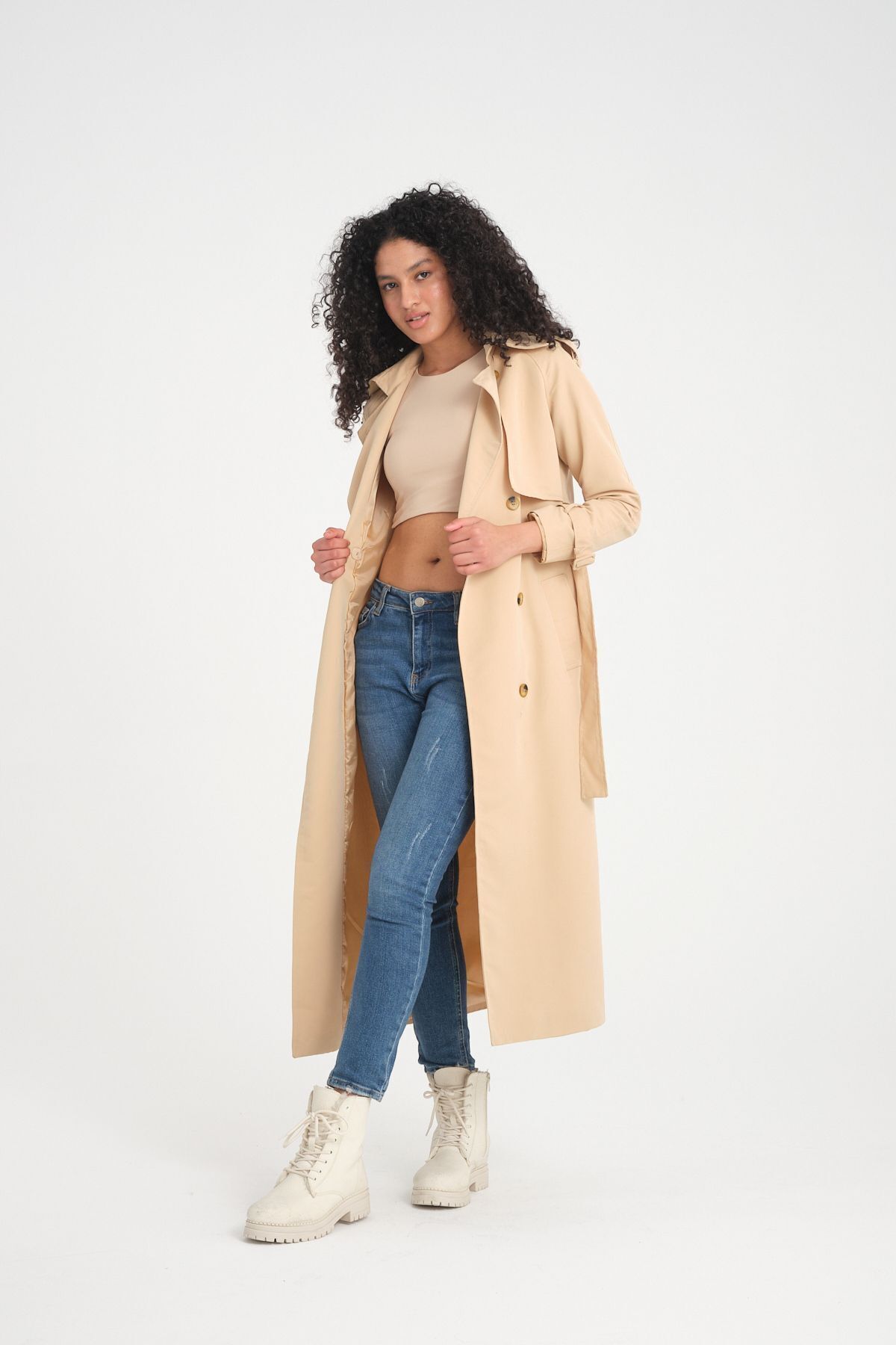 Kruvaze kapama ve kemer detayı ile dikkatleriüzerine çeken trençkotu, günlük tarzında tercih edebileceğin gibi gece şıklığıiçin ise ince topuklu bir ayakkabı ve etek ile zarif bir kombinedönüştürebilirsin.