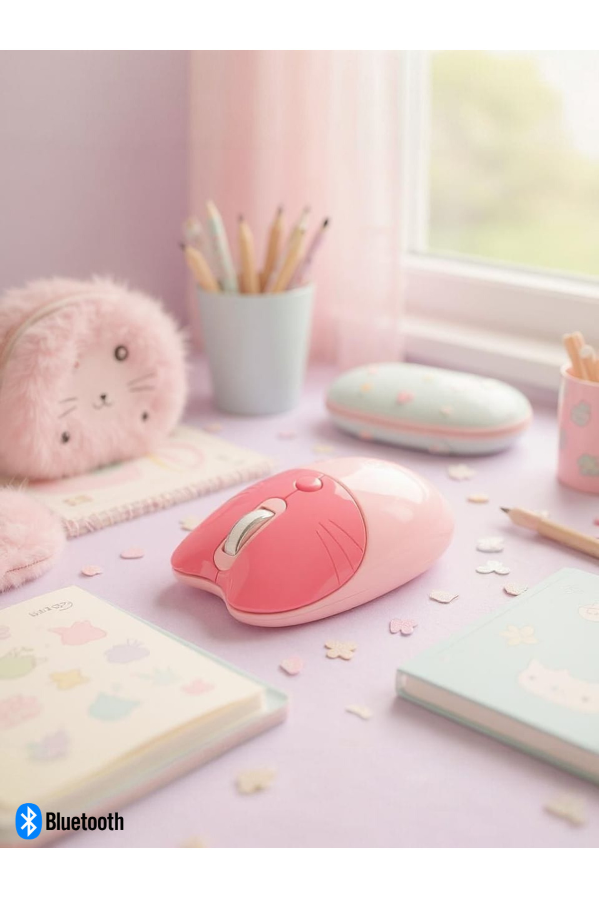 Sevimli Kedi Kablosuz Pembe Mouse Bluetooth + 2.4G Dual Mode Sessiz Tasarım: Bu ofis faresi, sessiz tasarıma ve kaymaz kaydırma tekerleğine sahiptir ve uzun süreli yorucu işlerde başkalarını rahatsız etmeden işinize konsantre olmanızı sağlar. Yaygın Uyumlu: Bu dizüstü bilgisayar faresi, Android, Win XP, Win7, Win8, Win10, OS X Laptop 10.4 veya üstü için uygundur. PC, laptop, tablet ve telefon ile uyumludur. Ayarlanabilir DPI: 3 DPI'lı (800/1200/1600) bu kız fare, 32,8 ft'e kadar etkili çalışma mesafesiyle tak ve çalıştır özelliğindedir. Güç tasarrufu ve otomatik uyku modu ile tasarlanmıştır. Taşınabilir Boyut: Hafif ve küçük boyutlu bu sessiz fare ev, ofis, işyeri, okul, kahve odası ve diğer durumlar için uygundur. Çift Mod: Bu kablosuz fare, BT 5.1 veya 2.4GHz kablosuz bağlantıyı destekler ve 2 cihaza bağlanabilir, sadece tek bir tıklamayla iki cihaz arasında geçiş yapın. Kutu içerisindeki kullanım klavuzunda tüm talimatlar yer almaktadır. Kullanım klavuzu arka sayfası Garanti Belgesi olarak tasarlanmıştır. Fatura tarihi itibari ile 24 ay garantilidir. TÜRKAK'ın ISO/IEC 17029 Standardındaki Tüm Ekoloji Testlerinden geçmiştir. Markamız CE Uygunluk beyanına sahiptir. İSO 9001:2015 / İSO 10002:2018 / İSO 14001:2015 / İSO 45001:2018 Marka Tescil Lisanslı ÖNEMLİ : İade Koşulları gereği kutusunu ve içeriğini hasar vermeden 15 iş günü boyunca saklayınız. Kutu içeriği