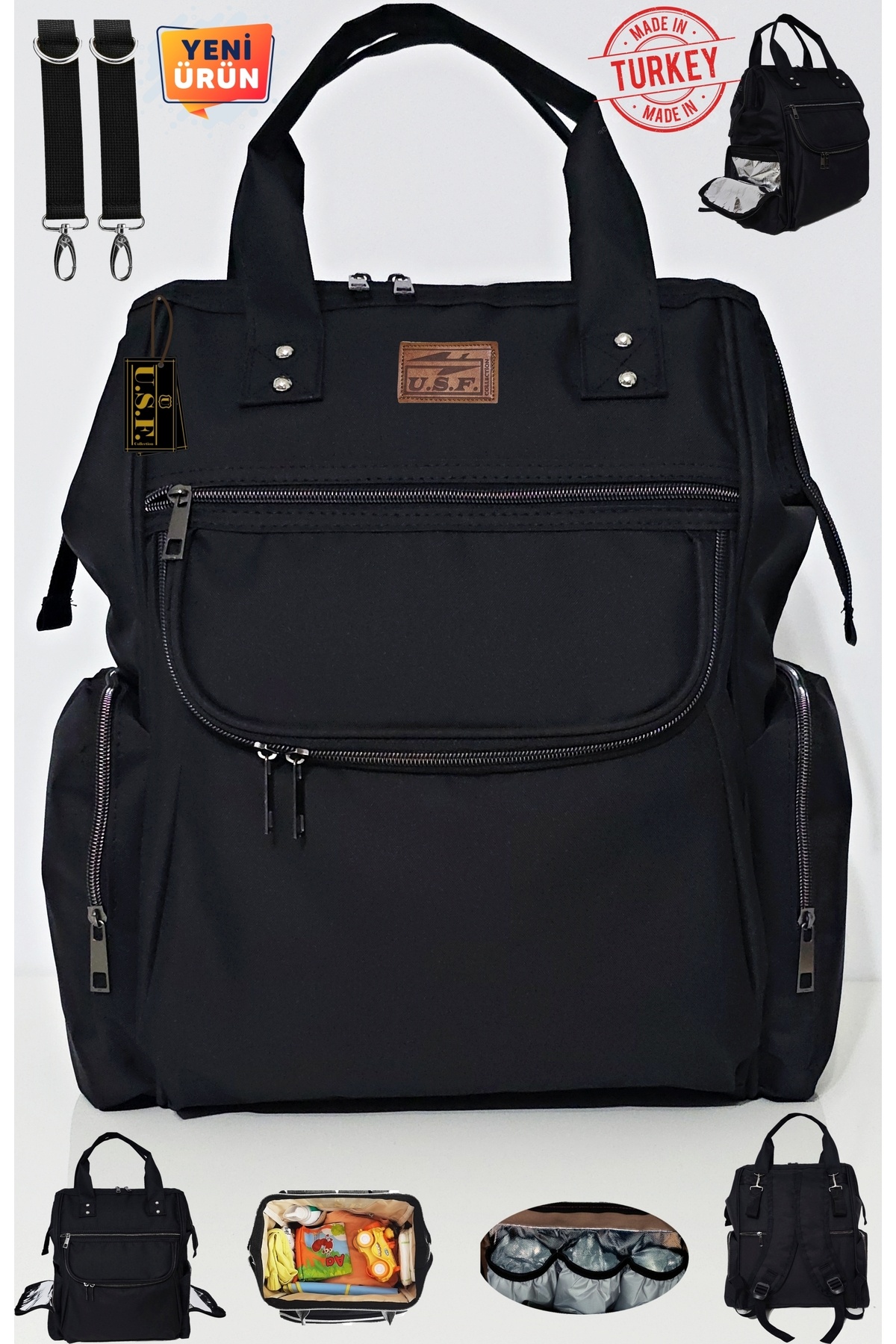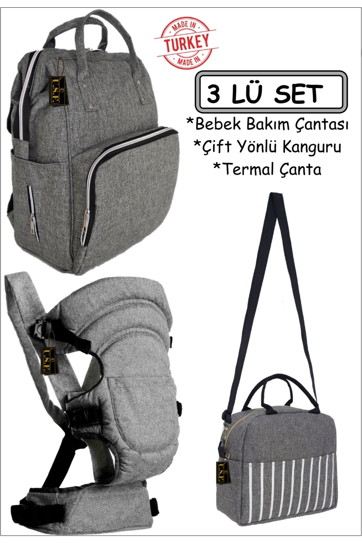 Çantamızın ön bölümünde 3 adet thermo özellikli biberon gözü (2-4 saate kadar soğuk & sıcak tutabilir) ve 1 adet ekstra cep bulunmaktadır