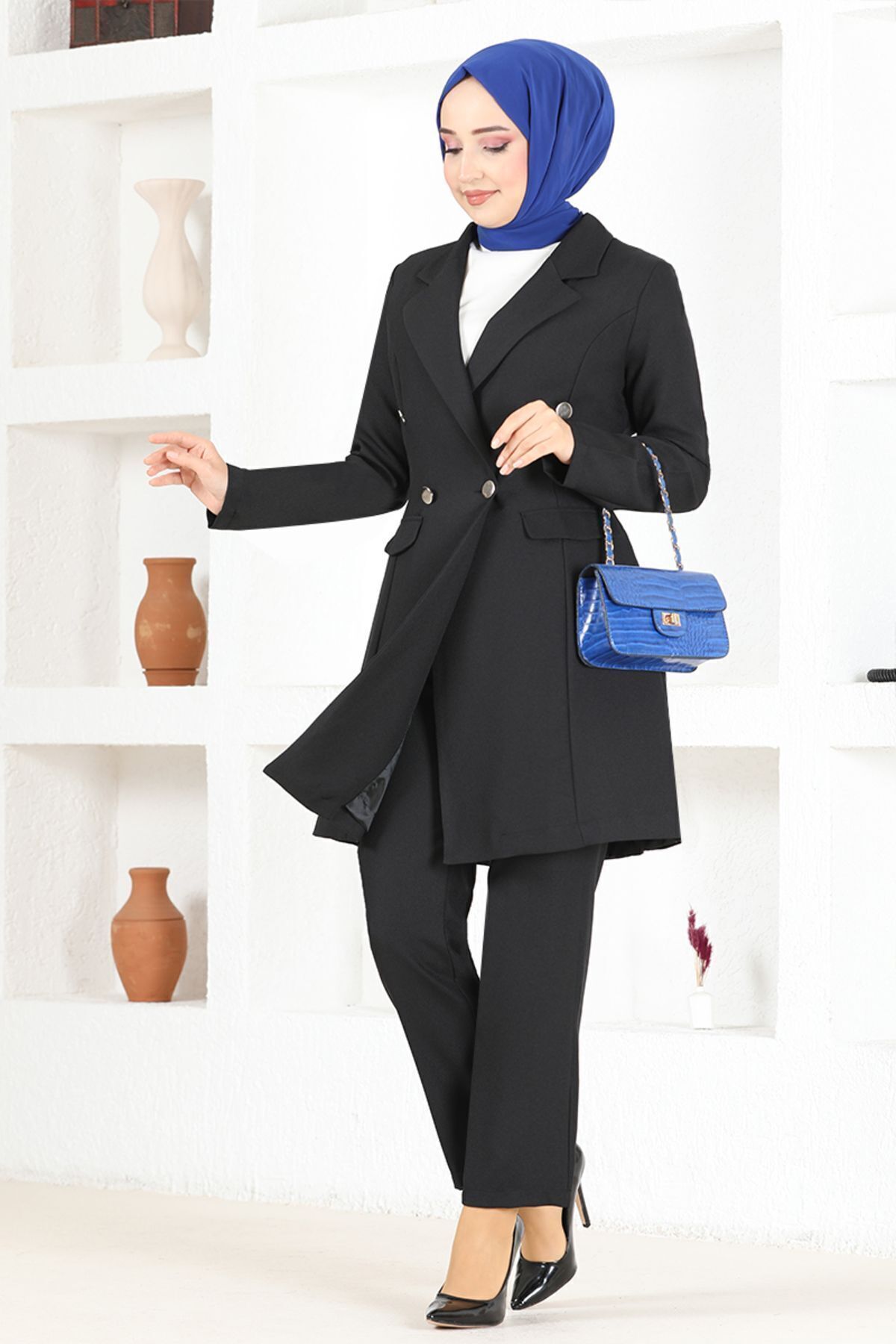 ÜRÜN ÖZELLİĞİ : ön kısmı 4 düğmeli tamamen açılır ceket astarlıdır pantolon beli lastiklidir.