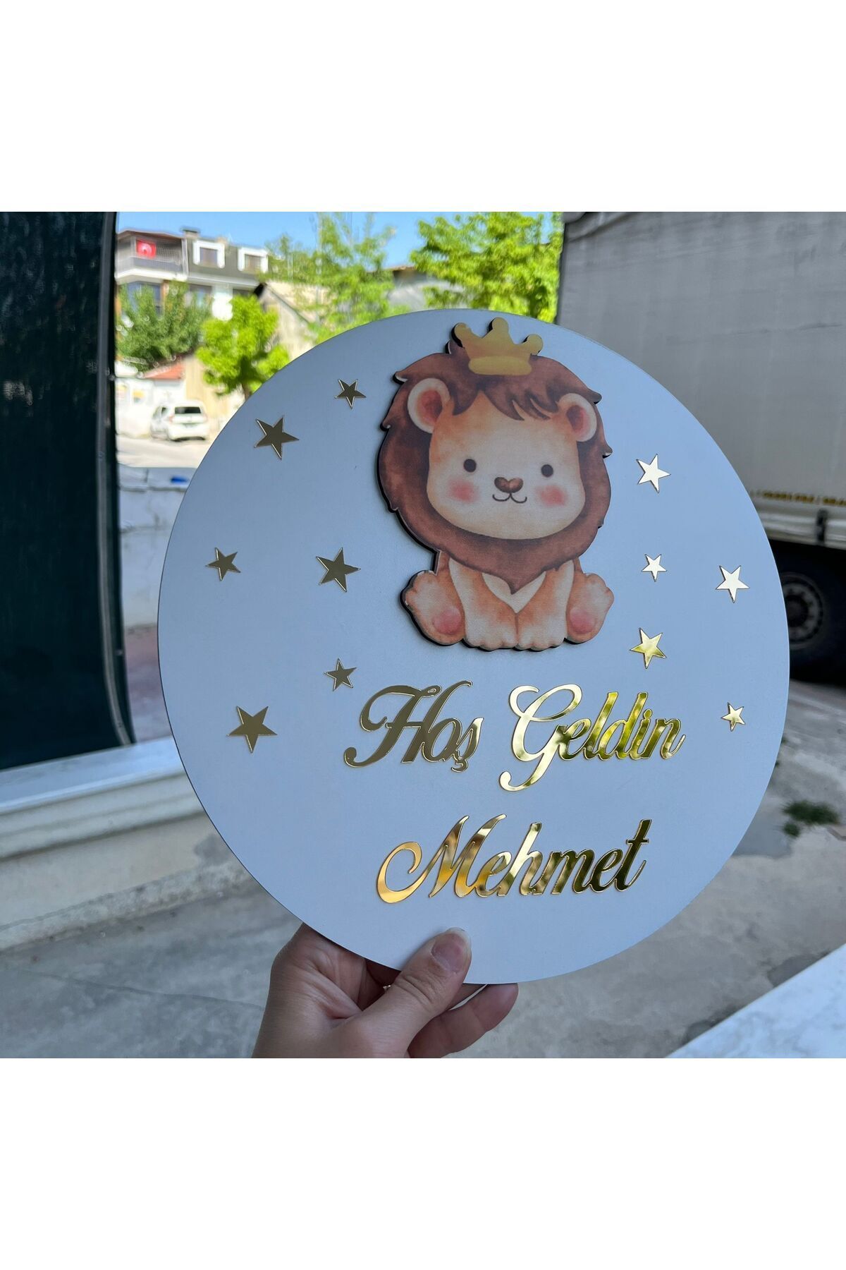 - Bebek odalarına neşe katacak aslan figürlü aynalı kapı süsü, minik prensesler ve prensler için ideal bir dekorasyon seçeneği