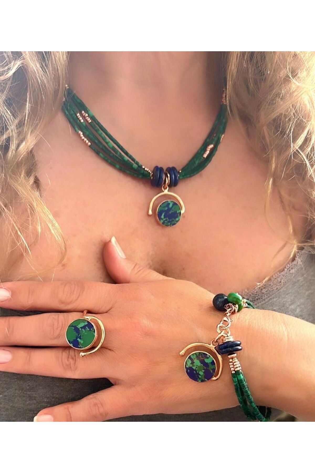 925 ayar gümüş Malakit Lapislazuli kolye ucumuz kendi atölyemizde elde yapılmaktadır.