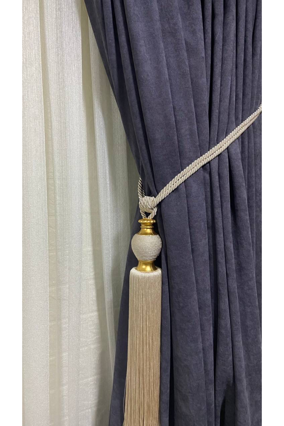 Perde aksesuarı olarak tasarlanmış, duvar dekorasyonunuza şıklık katan ip sarım vazo braçol