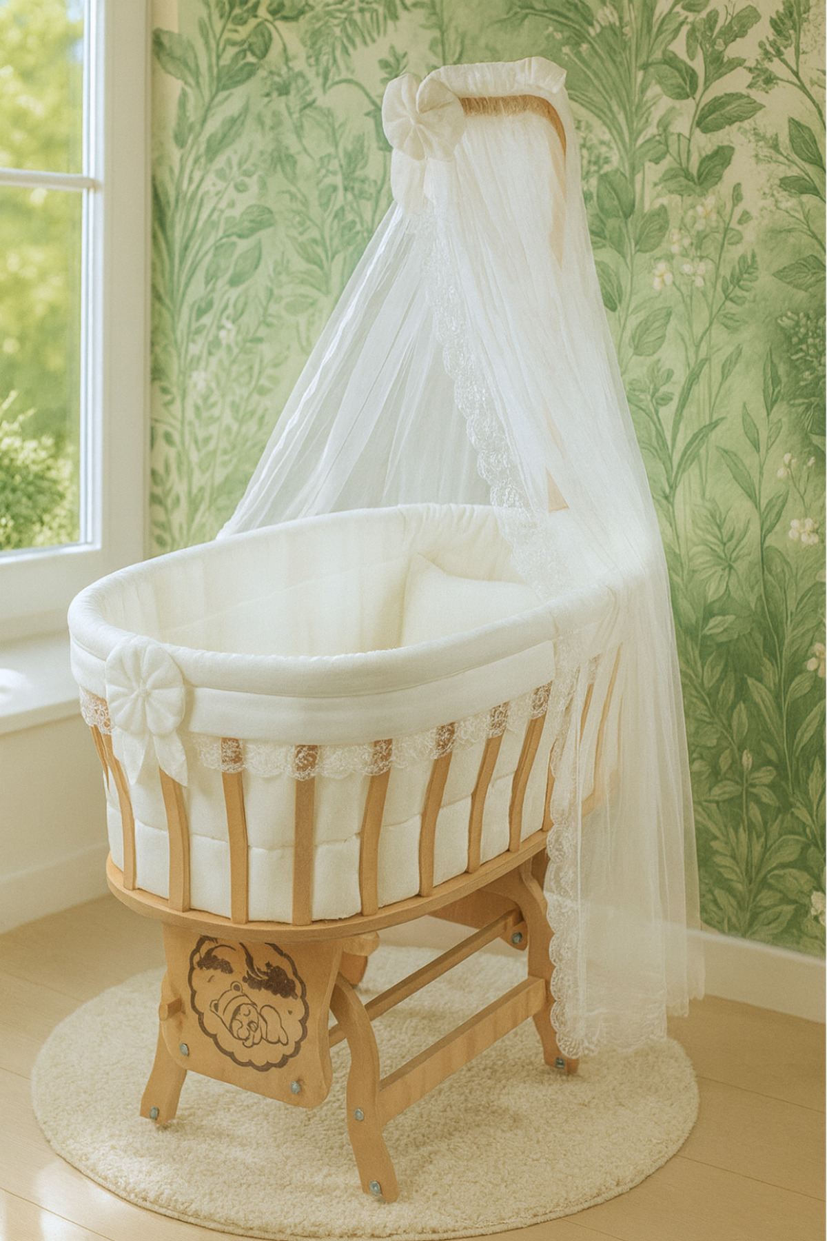 -Uyku seti ile gönderilmektedir. -Ürünümüz 2 yıl garantilidir. (BEBEKONFOR Sepet Beşik Fransız Danteli Bebek Besigi Dikkat Brich Plywood Doğal Ahşap Tekerlekli 0x1 Krem Fransız Dantelli Uyku Seti Ile Doğal Ahşap Sepet Beşik / Bersava) -Ürünlerimiz 2 yıl garantilidir. - -Modelimiz lamine kayın ağacından imal edilmiştir. Kolayca kurulup sökülebilmektedir. Boya ve cila kullanılmadan üretilen, bambu beşik olarak da tanınan modelimizdir. -Uyku seti içeriği orta sert yatak (kılıflı), yastık, yorgan, yan korumalıklar ve cibinliktir.