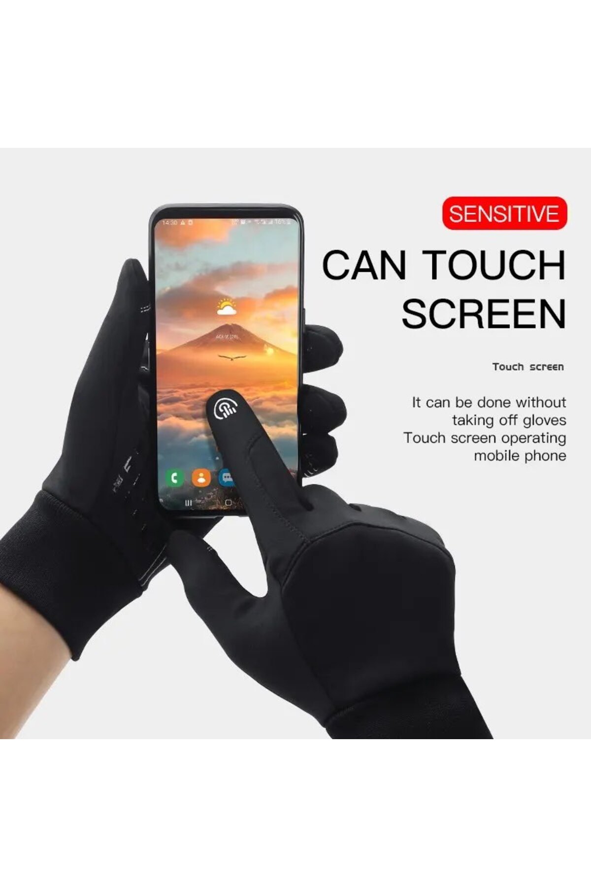 Her iki yöndeki eldivende Baş ve İşaret parmağında bulunan özel iletken dokunmatik kumaş sayesinde rahatlıkla telefonunuzu ya da dokunmatik özelliğe sahip bir cihazı kullanabilirsiniz.