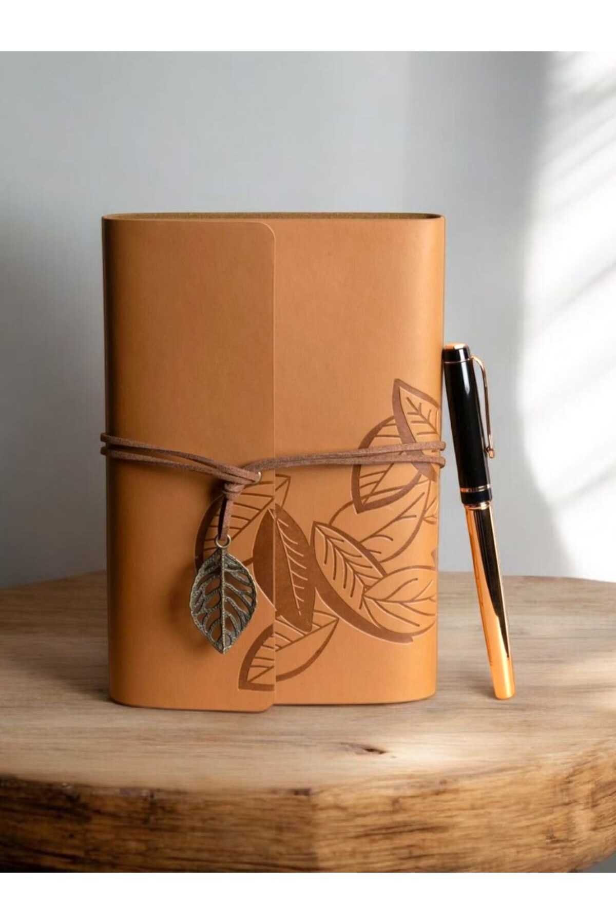 Özel tasarımıyla dikkat çeken bu not defteri, deri kapak yapısı sayesinde şık ve dayanıklı bir kullanım sunar