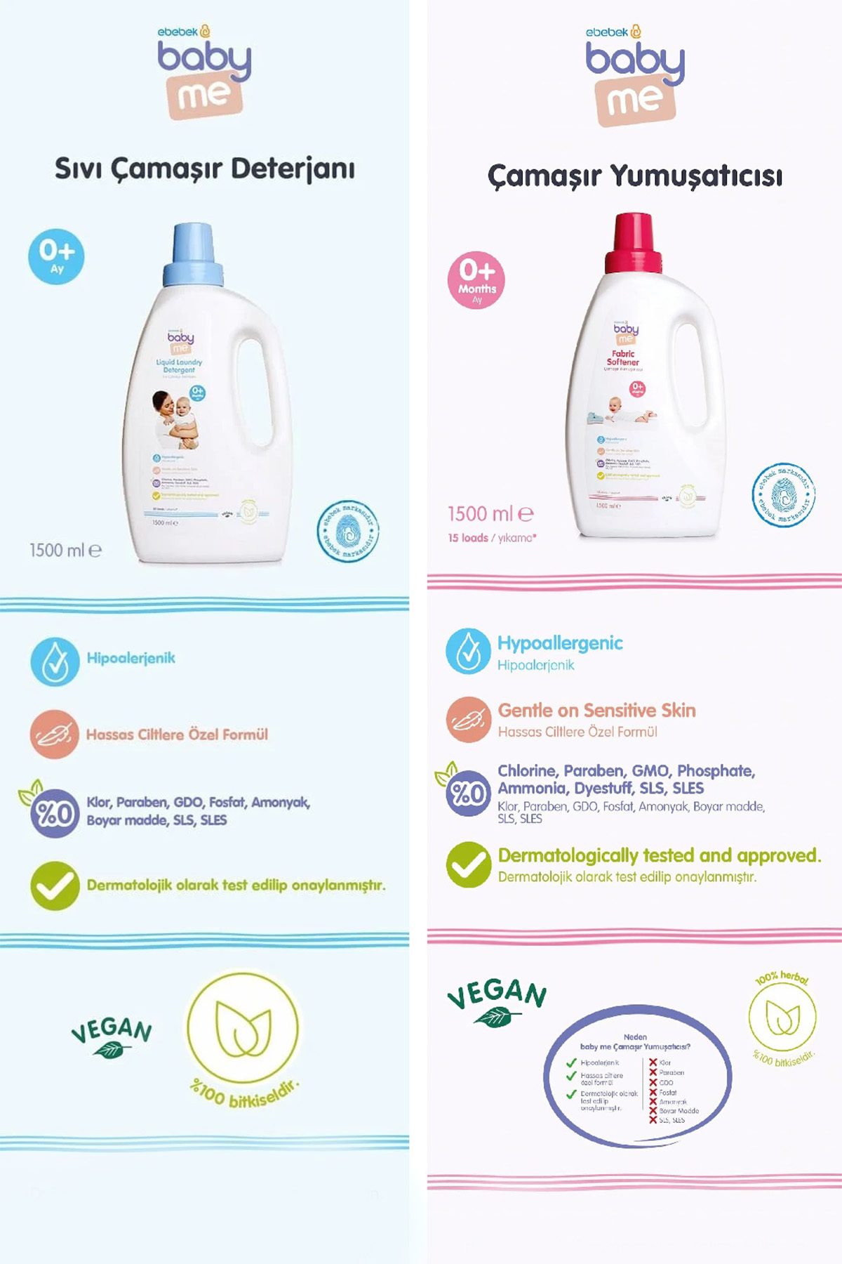 Doğal Sıvı Bebek Çamaşır Deterjanı 1500 ml, Doğal Çamaşır Yumuşatıcı 1500 Ml Set