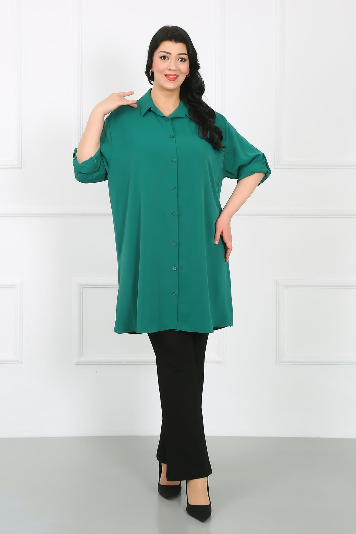 (ileğe kadar uzundur.) Önü düğmelidir.