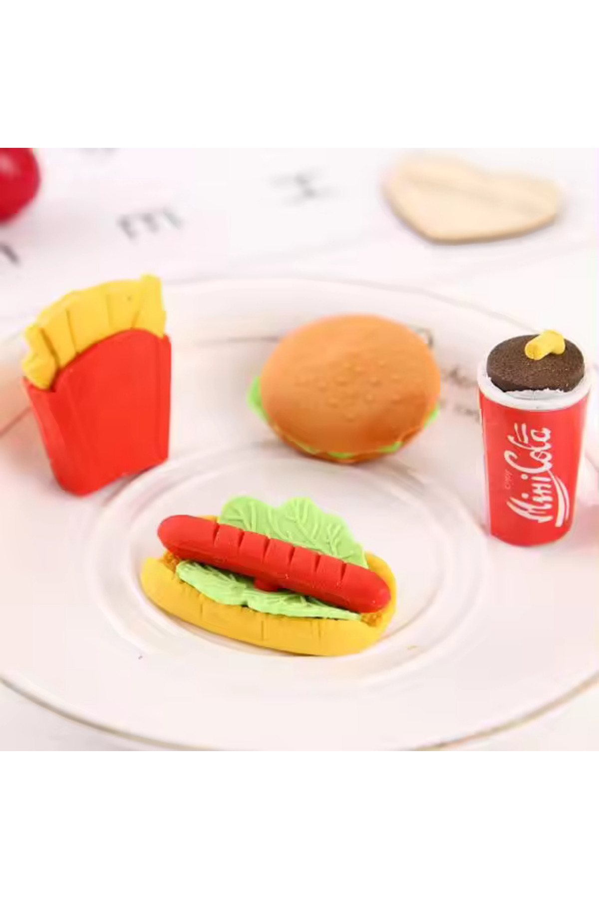 Fast Food Menü Hamburger Kola Patates Sosisli 4'Lü Silgi Seti Paket İçeriği: 1 adet hamburger, 1 adet kızarmış patates, 1 adet kola, 1 adet sosisli sandviç