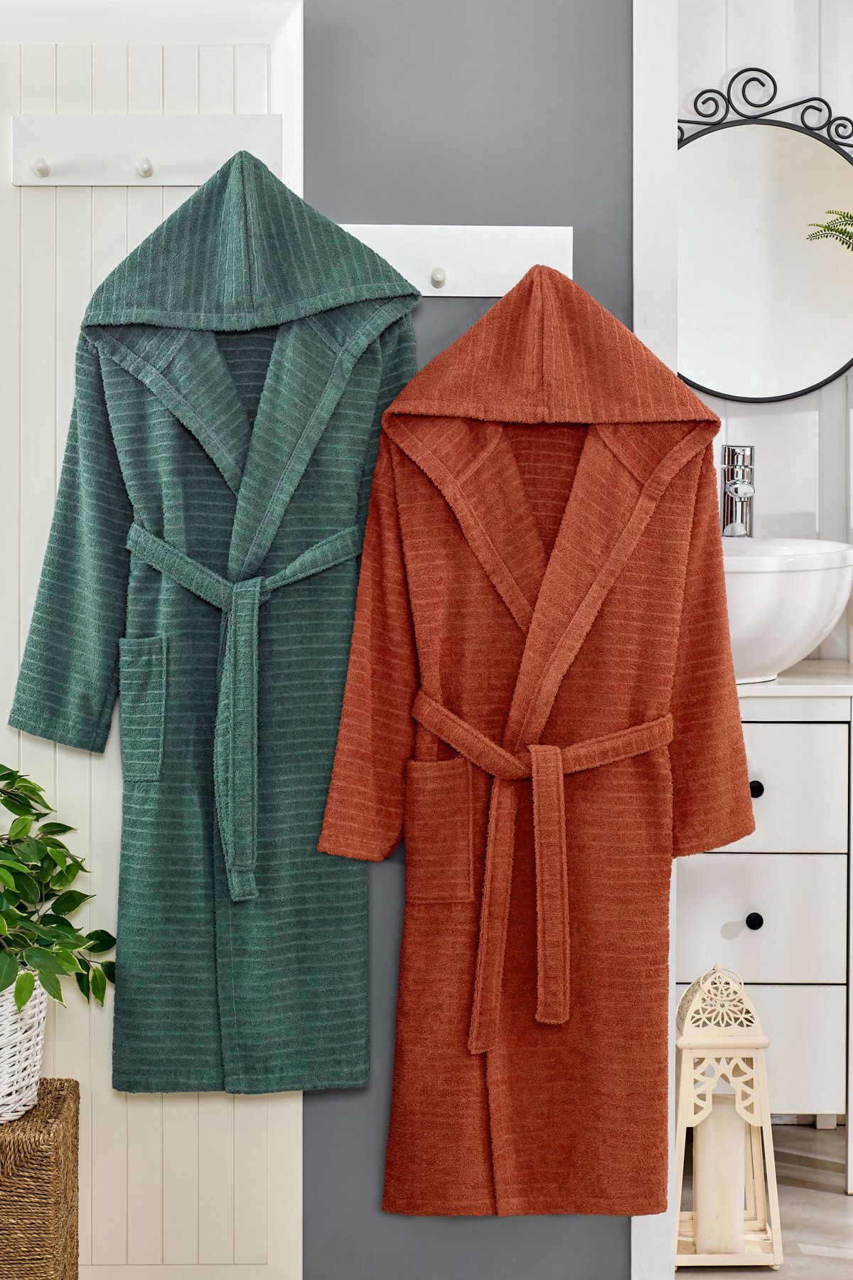 Bu lüks pamuk bornoz, konfor ve şıklığı bir araya getiriyor.