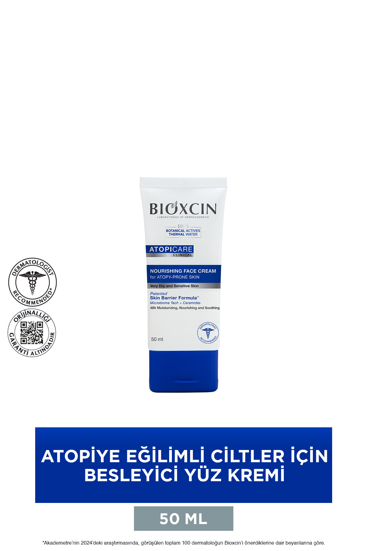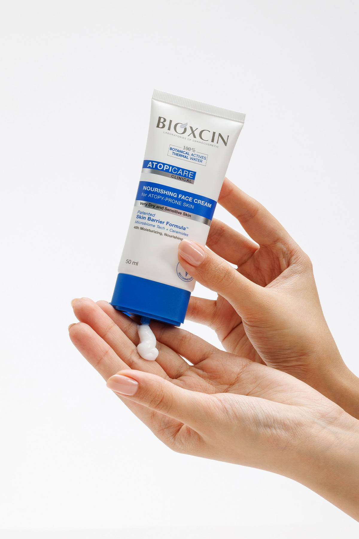 • Bioxcin Atopicare Yüz Kremi, atopiye eğilimli ve hassas ciltler için özel olarak geliştirilmiştir. İçeriğindeki niacinamide ve seramid sayesinde cildin doğal bariyerini güçlendirir, nem dengesini korur ve dış etkenlere karşı koruma sağlar. Krem formu cilde kolayca nüfuz eder, hızlı emilir ve uzun süreli nemlendirme sağlar. Anti-alerjik yapısıyla bebek, çocuk ve yetişkin ciltleri için uygundur. Dermatolojik olarak test edilmiştir.