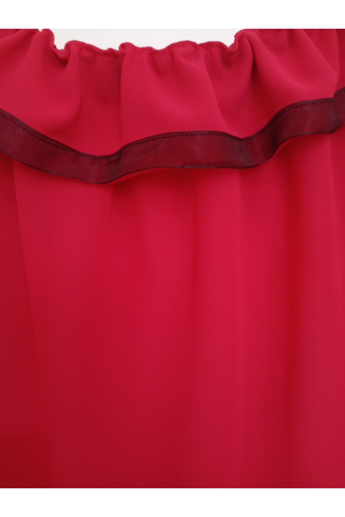 Kırmızı multi şifon ( resimde bir ton açık çıkıyor ) siyah organze kurdele detaylı 164 cm çevre ölçüsü olan model