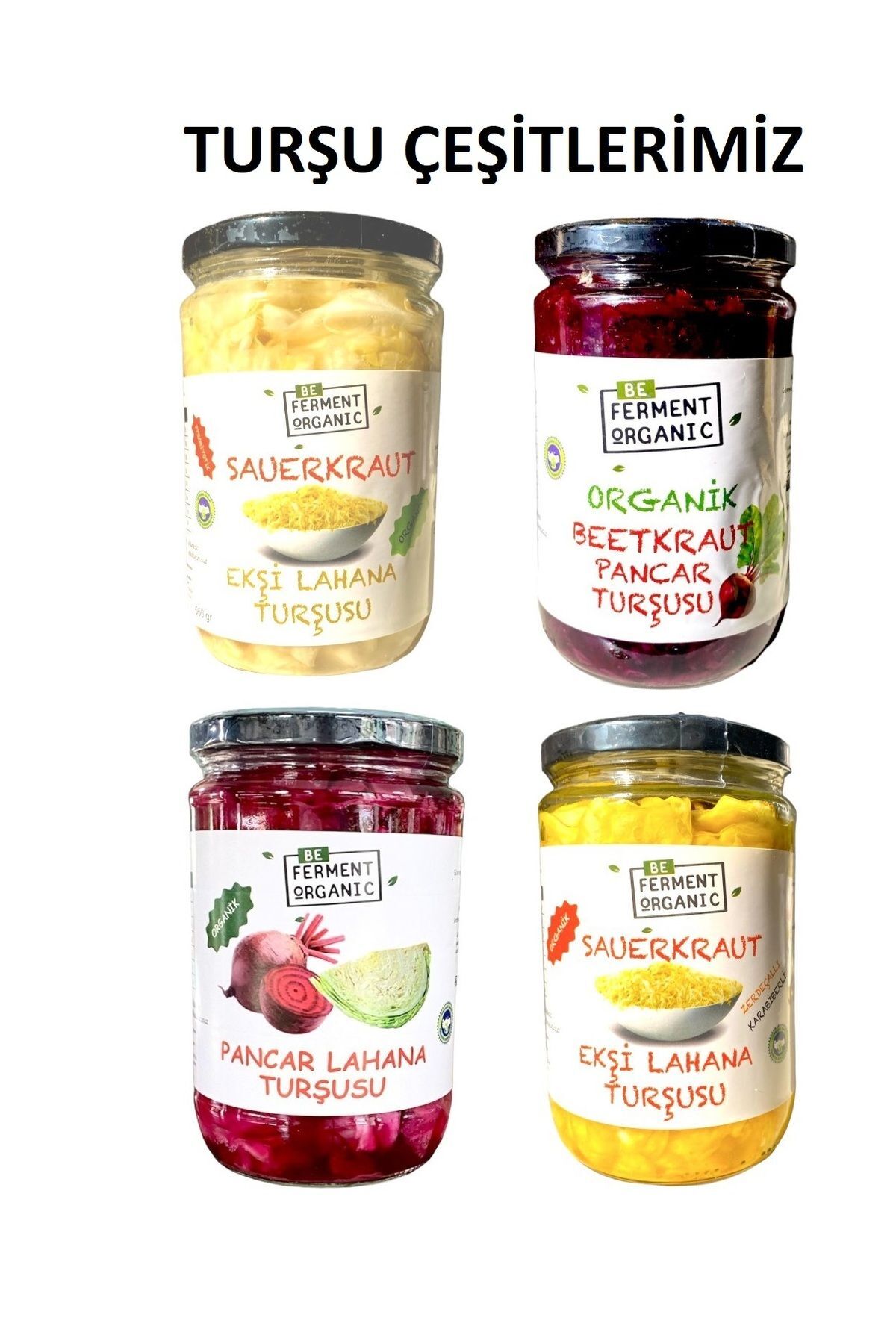 İçindekiler:Organik beyaz lahana, organik pancar, kaya tuzu Turşu özellikle Almanya'da sauerkraut adı ile ile bilinmektedir. Turşumuz pancar ve lahananın sadece tuz ile ovulup fermante edilmesiyle hazırlanmış lakto fermante turşu çeşidir. Pancar turşusu içerdiği antioksidanlar ve vitaminlerle bağışıklık sisteminin güçlenmesine katkı sağlar. Hastalıklara karşı daha dirençli olmanıza yardımcı olur. Kalp sağlığına, sindirim sağlığına, cilt sağlığına, karaciğer fonksiyonlarına faydası olduğu bilinir. Probiyotik açıdan zengin olan bu turşuyu doğrudan tüketebilirsiniz. Bedenimizi baştan aşağı besleyen probiyotiklerin yanı sıra, pancar içeriğinde A, B6, B12, C, E ve K vitaminleri bulunmaktadır, beyaz lahana ise iyi bir lif kaynağı olarak da bize iyi gelen bir besindir. Aynı zamanda kalsiyum, potasyum, sülfürofan ve K vitamini yönünden de zengin olması, doğal fermente lahana turşusu Sauerkraut'u çeşitli hastalıklara karşı koruyan bir savaşçıya dönüştürüyor. Bu doğal fermente pancar lahana turşusu Sauerkraut'u çeşitli hastalıklara karşı koruyan bir savaşçıya dönüştürüyor. Enerji Besin Öğeleri(100 g): Enerji (kcal): 31