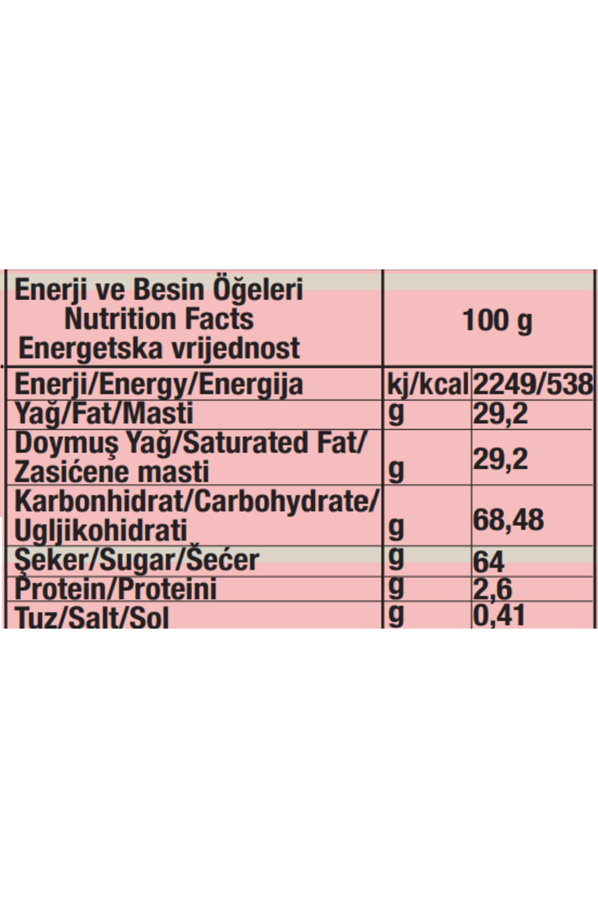Eser miktarda gluten, yumurta ve kabuklu yemiş ve türevleri içerebilir.