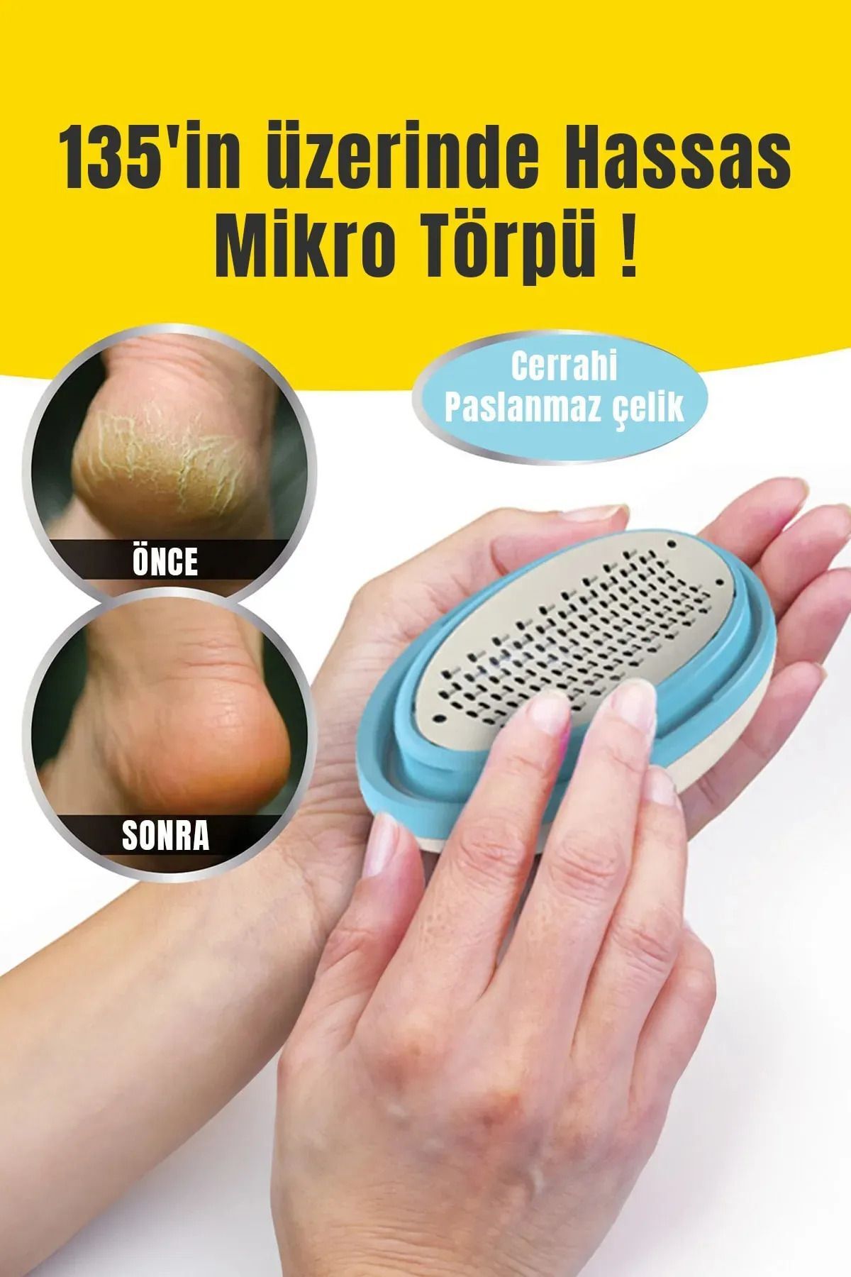 Ayak bakım törpüsü ayaklarınızı ölü deriden arındırmanıza yardımcı olacak törpü! Ayaklarınızda oluşan ölü deriden pratik bir şekilde kurtulmanızı sağlayacak törpüdür. Temizlediğiniz ölü derileri haznesinde toplayarak etrafa saçılmasını önleyecektir. Canınızı yakmadan, sağlıklı deriye zarar vermeden temizler. Nasırları da temizlemenize yardımcı olur. Yumuşacık ve pürüzsüz bir cilde sahip olmanıza yardımcı olur.