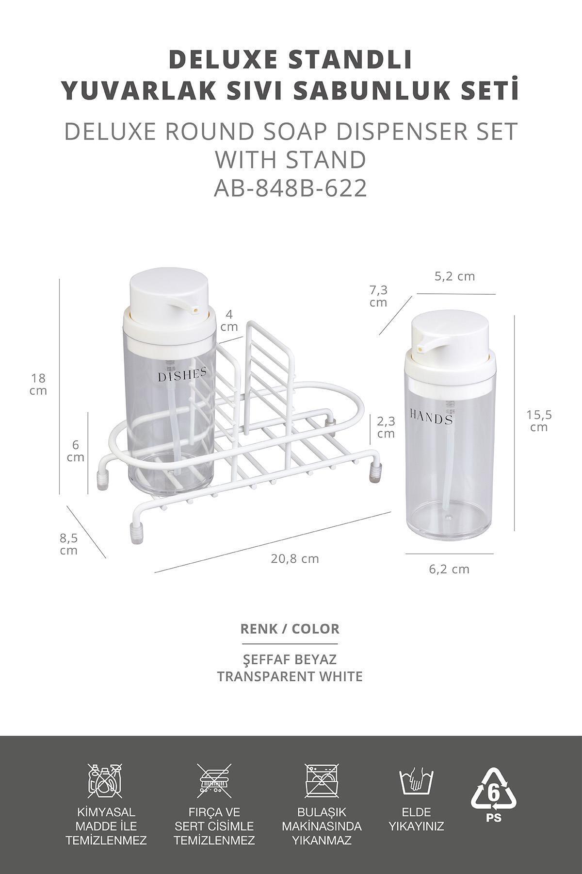 Okyanus Home Beyaz Deluxe Yuvarlak Standlı 2'li Şeffaf Sıvı Sabunluk
