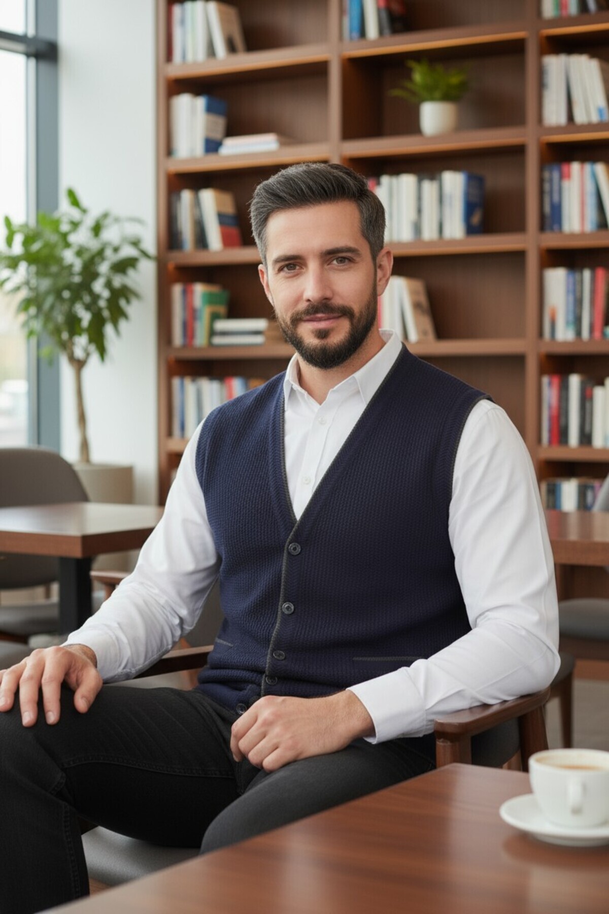 Lacivert Erkek V Yaka Triko Düğmeli Cepli Çizgi Desenli Regular Fit Tüylenmeyen Örgü Yelek