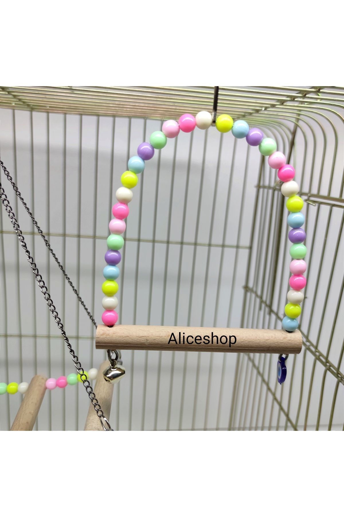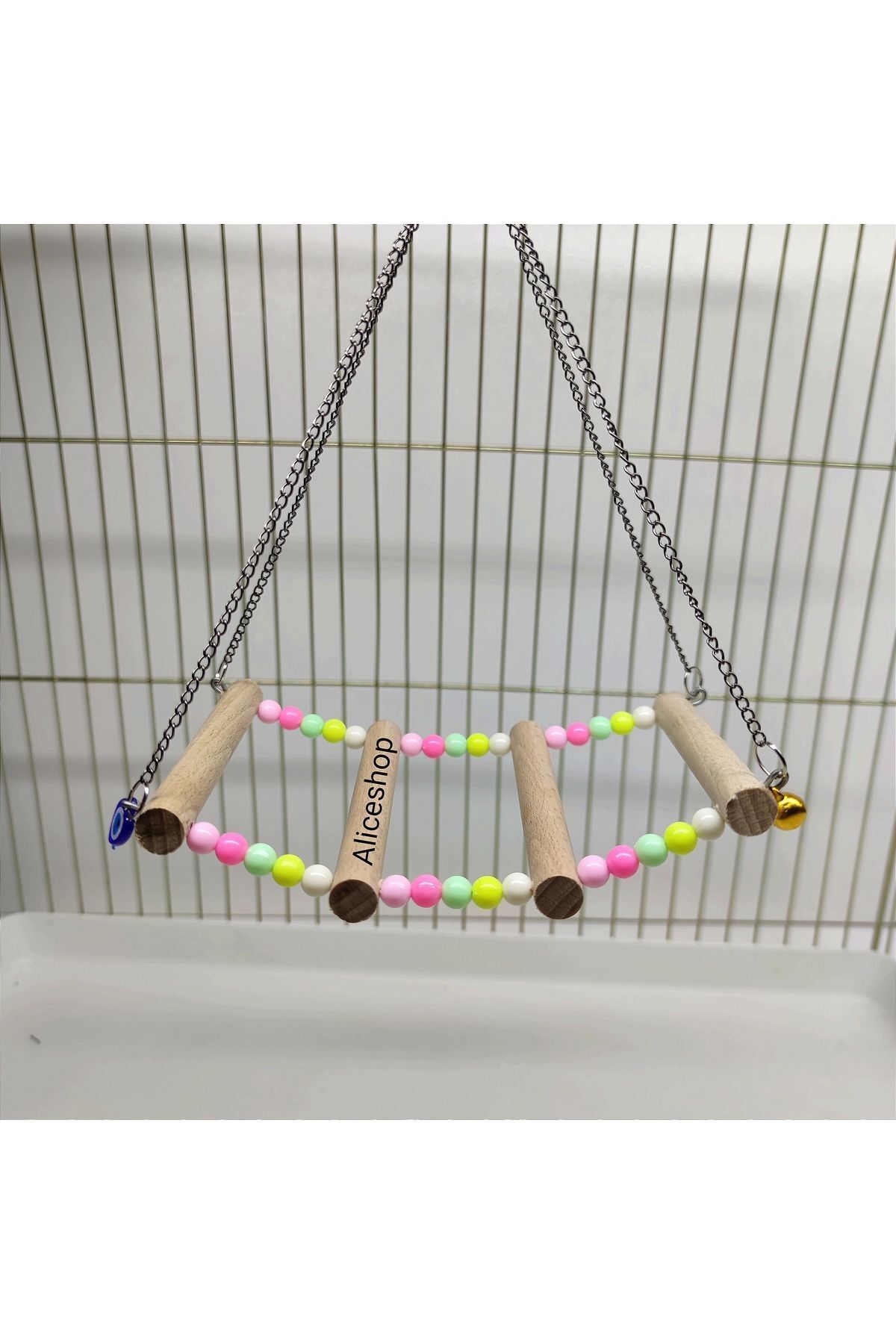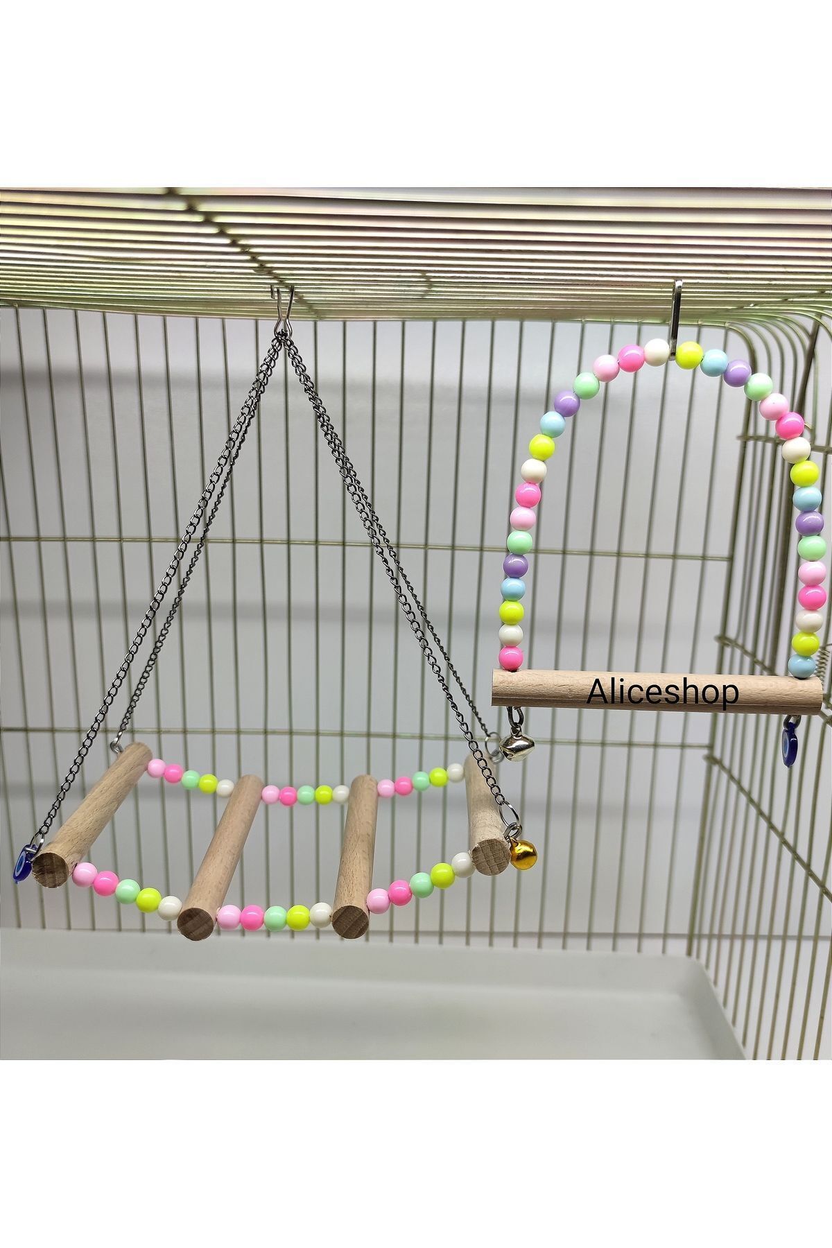 Muhabbet kuşu ve boyutlarındaki kuşlar için 3lü kuş oyuncağı seti salıncak merdiven köprü