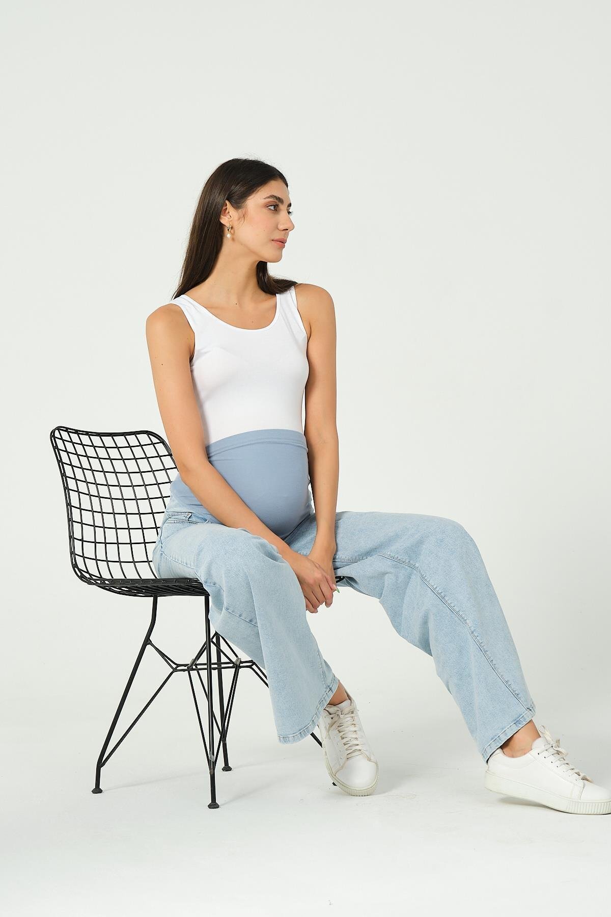 Busa Hamile Esnek Karın Bantlı Beli Ayarlanabilir Geniş Paça Kot Pantolon Mavi