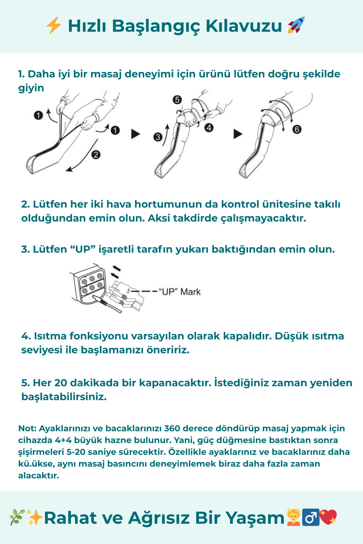 Öne Çıkan Özellikler: Çift bacak hava sıkıştırmalı ısıtma özelliği sayesinde ayaklarınızı ve tüm bacaklarınızı aynı anda sıcaklıkla rahatlatır.